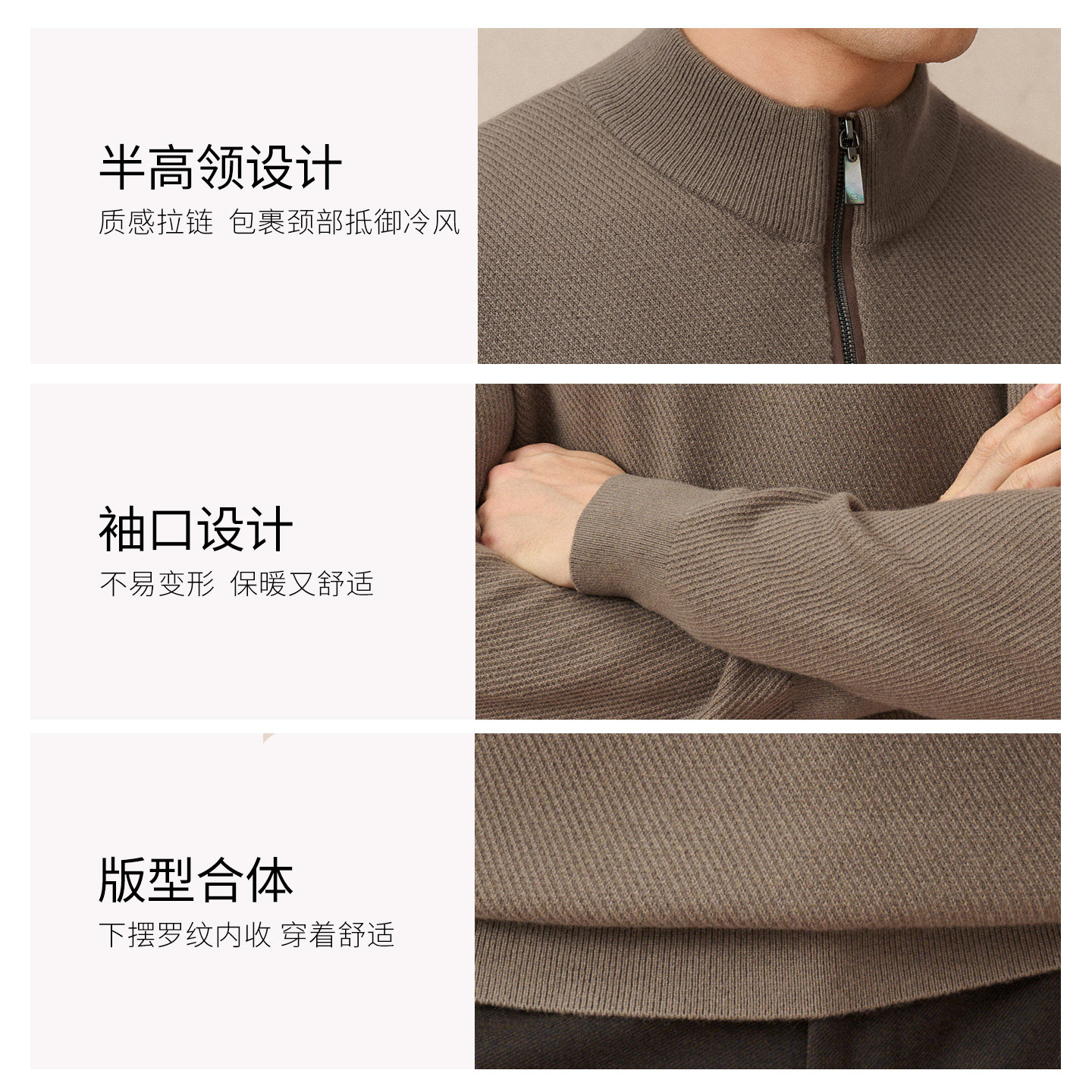 天秋冬新款100%纯山羊绒衫男士半高拉链保暖中青年大码针织套头毛衣