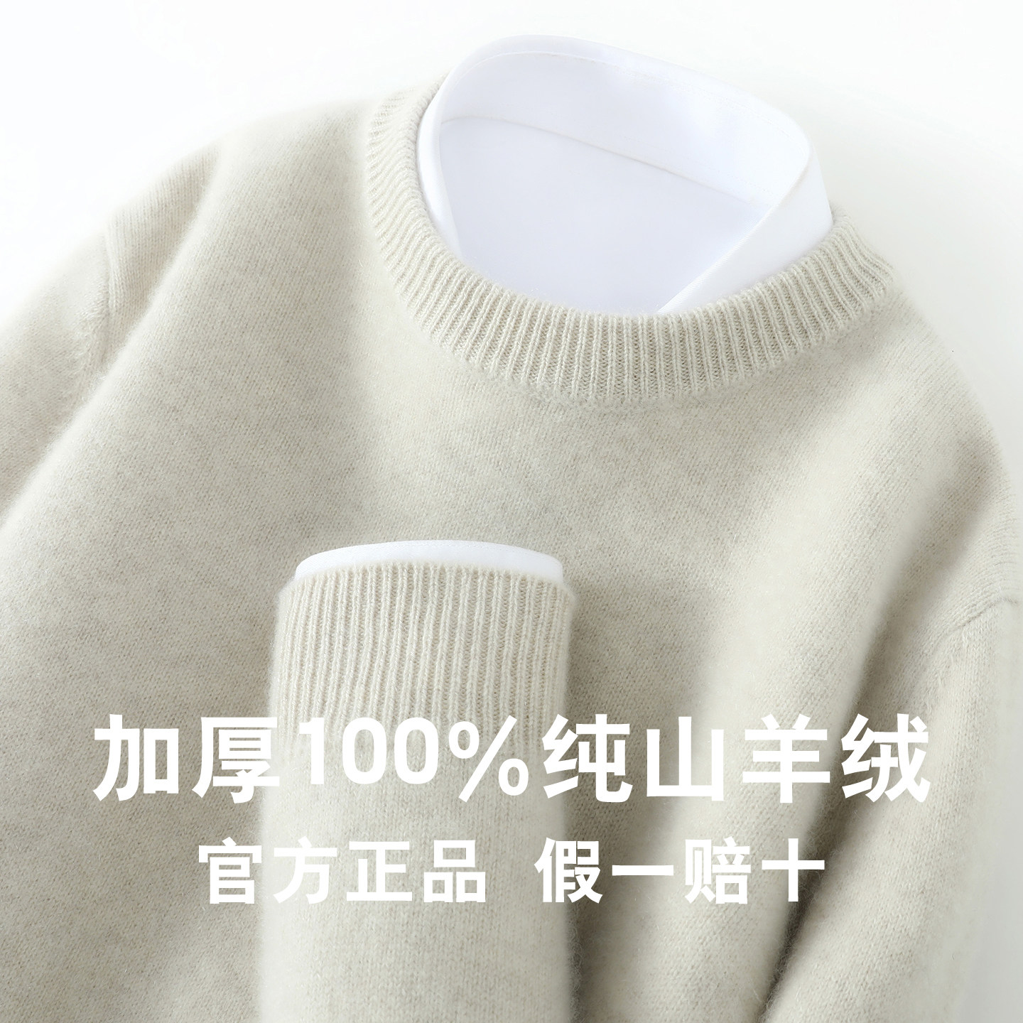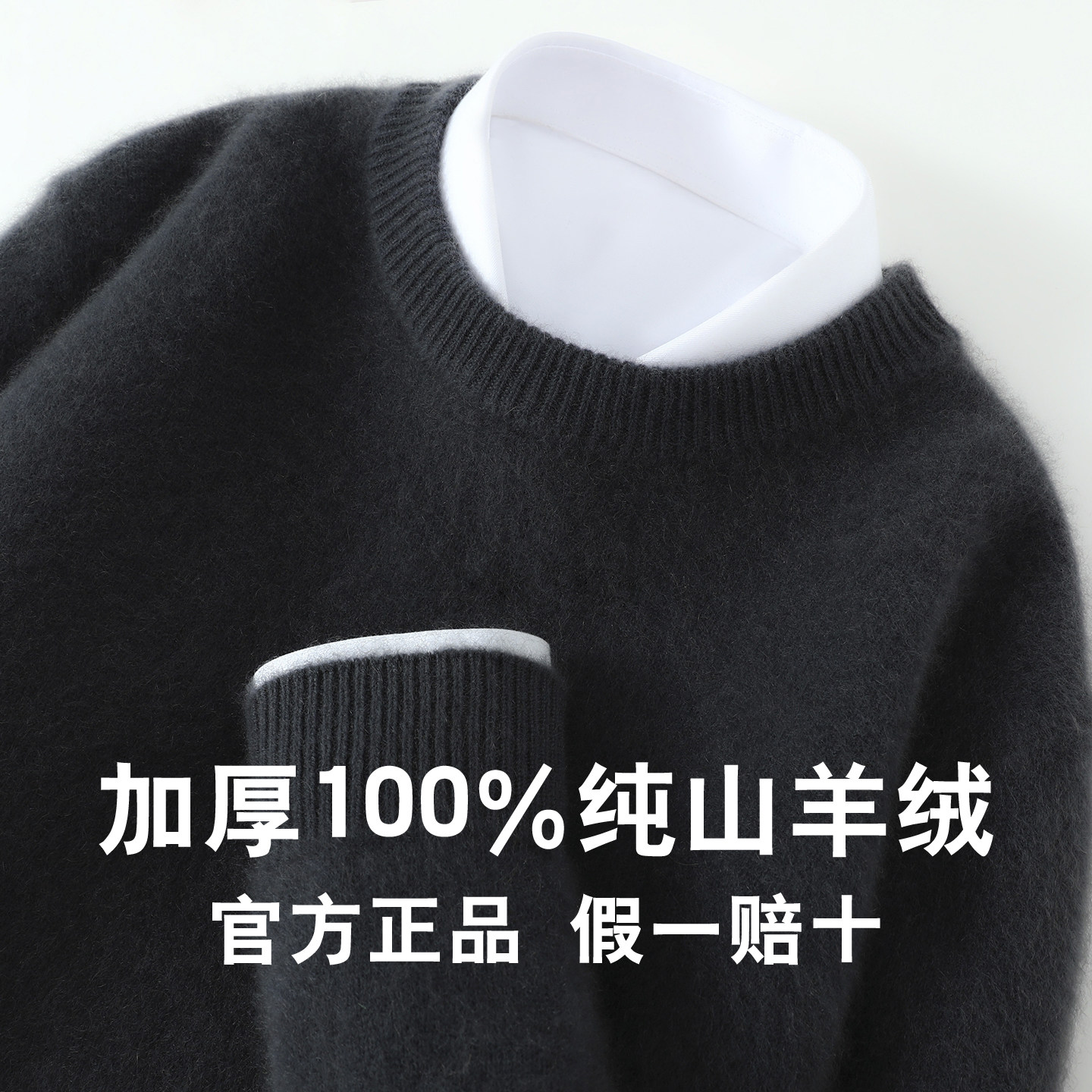 淘宝冬季新款100%纯山羊绒衫男士圆领宽松针织毛衣男款双股加厚打底衫