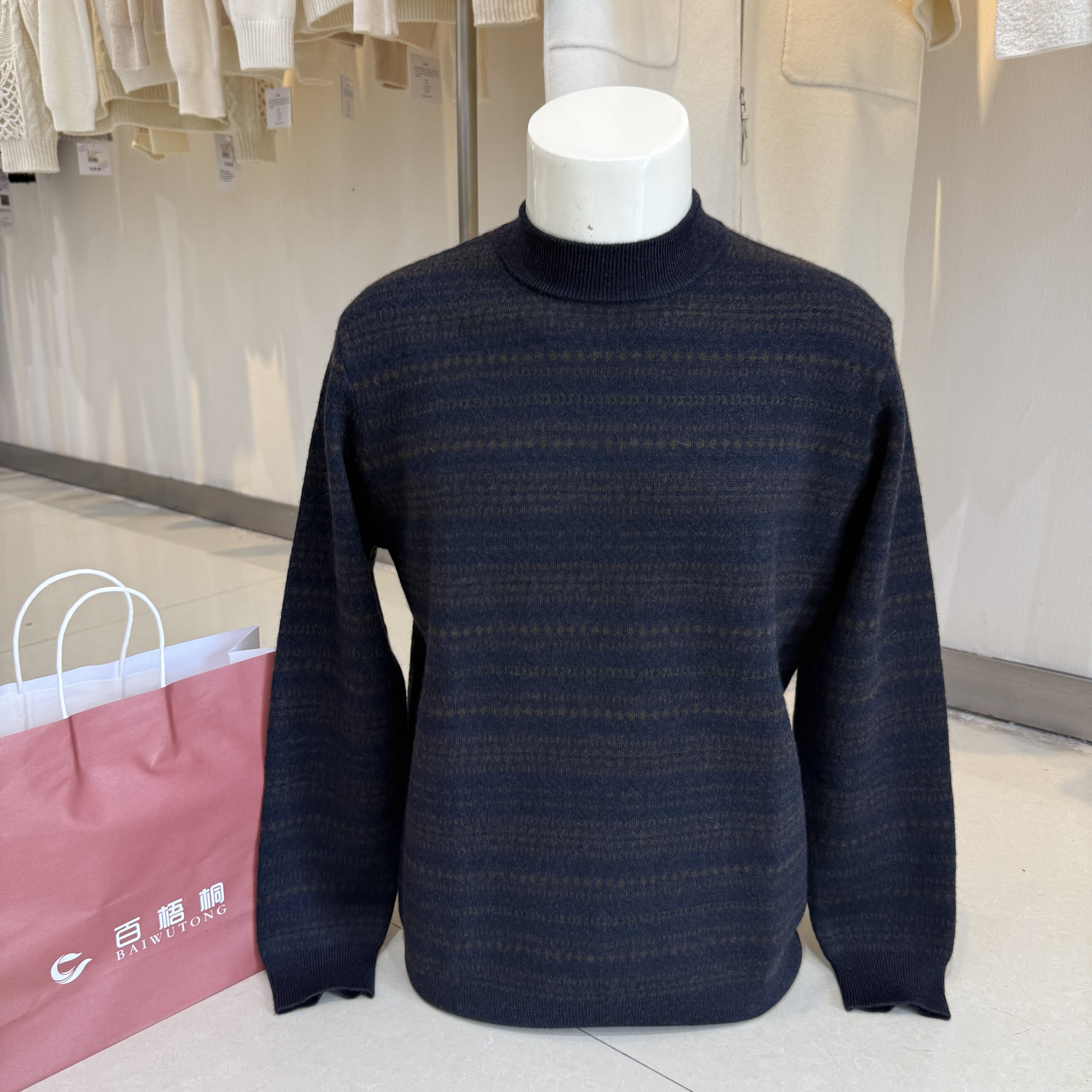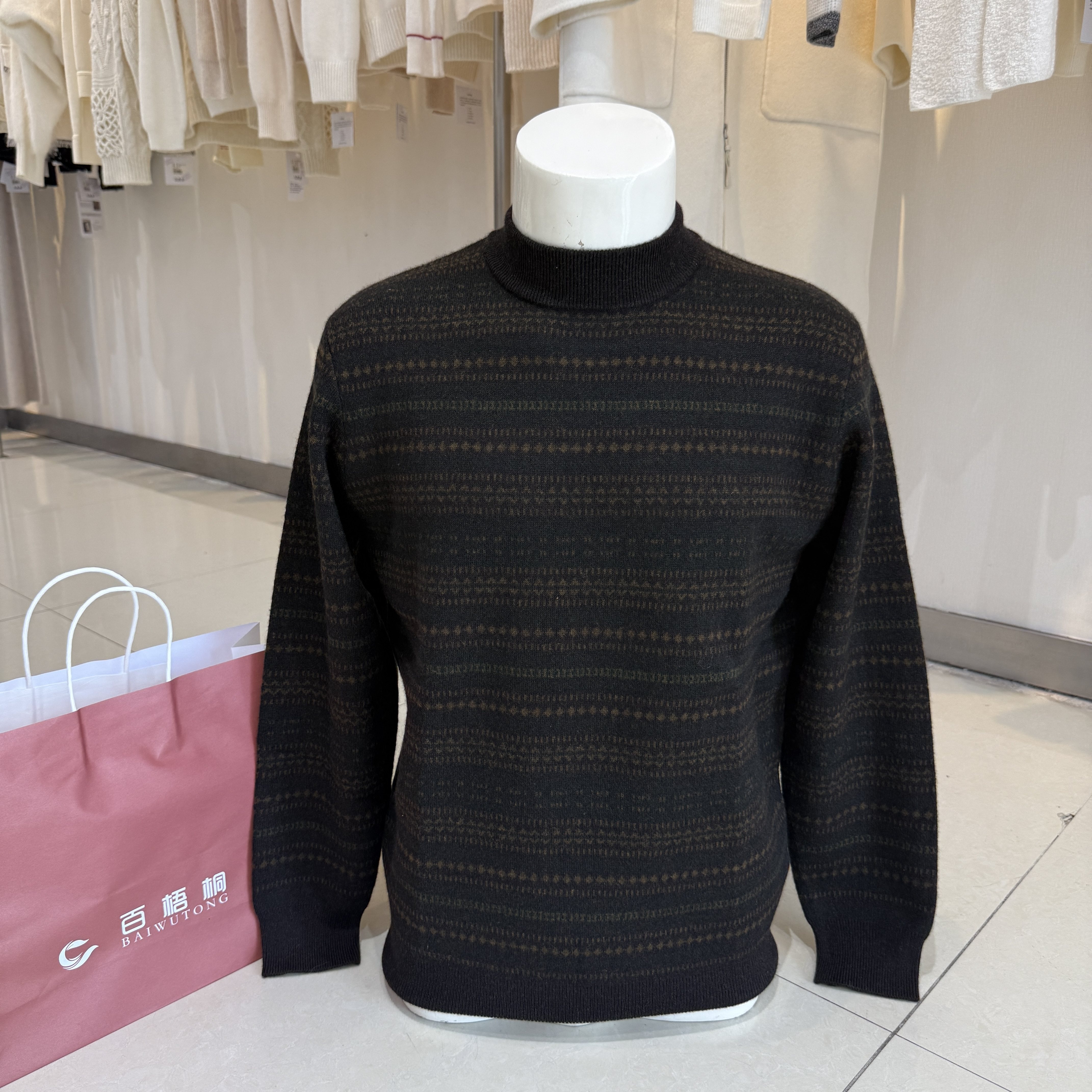 淘宝唐古拉专柜秋冬男士提花加厚耗牛绒衫中年套头保暖羊毛衫实体现货