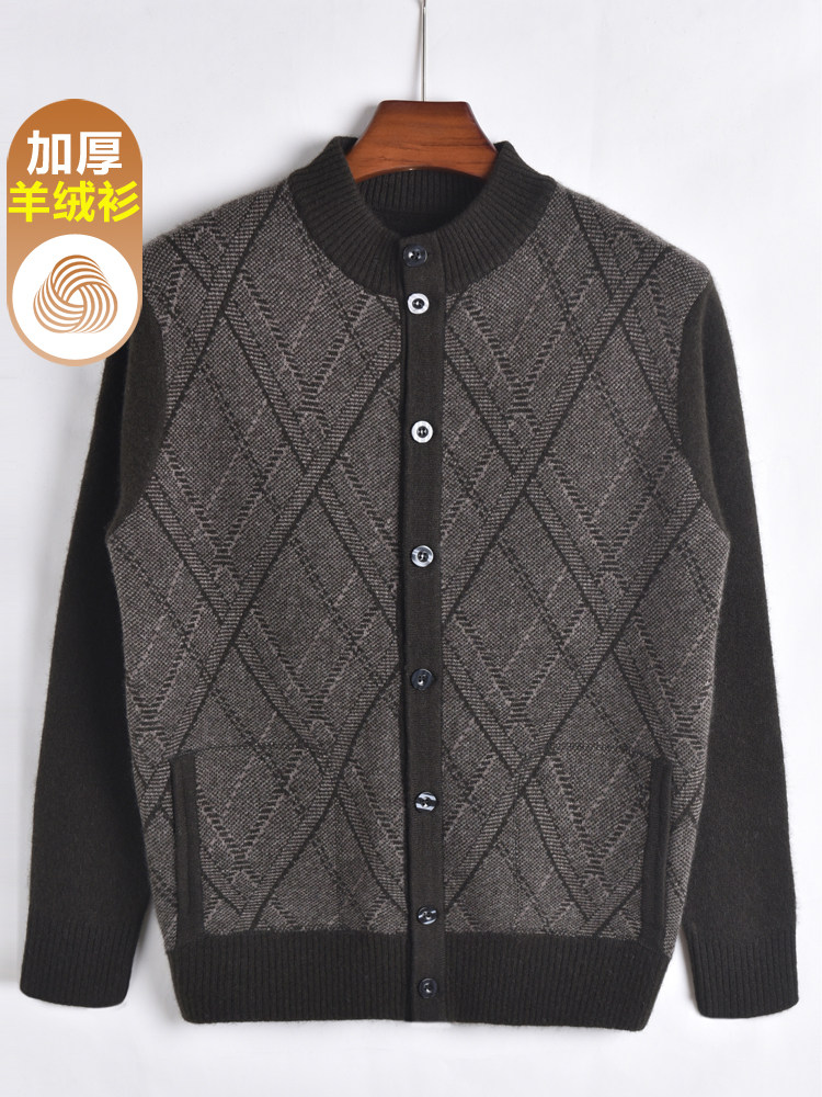 淘宝秋冬新款加厚中老年人羊毛衫外套男爸爸装毛衣爷爷针织衫羊绒开衫