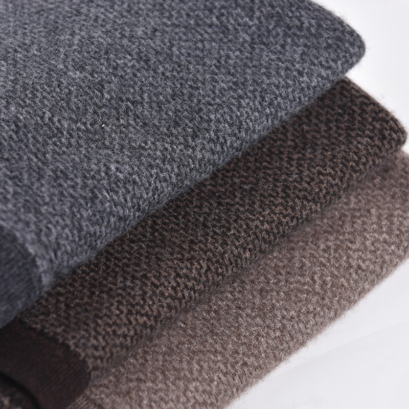 啄木鸟冬季圆领羊绒衫男士仿水貂绒毛衣加厚保暖提花针织羊毛衫潮
