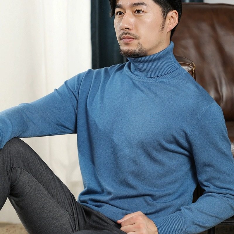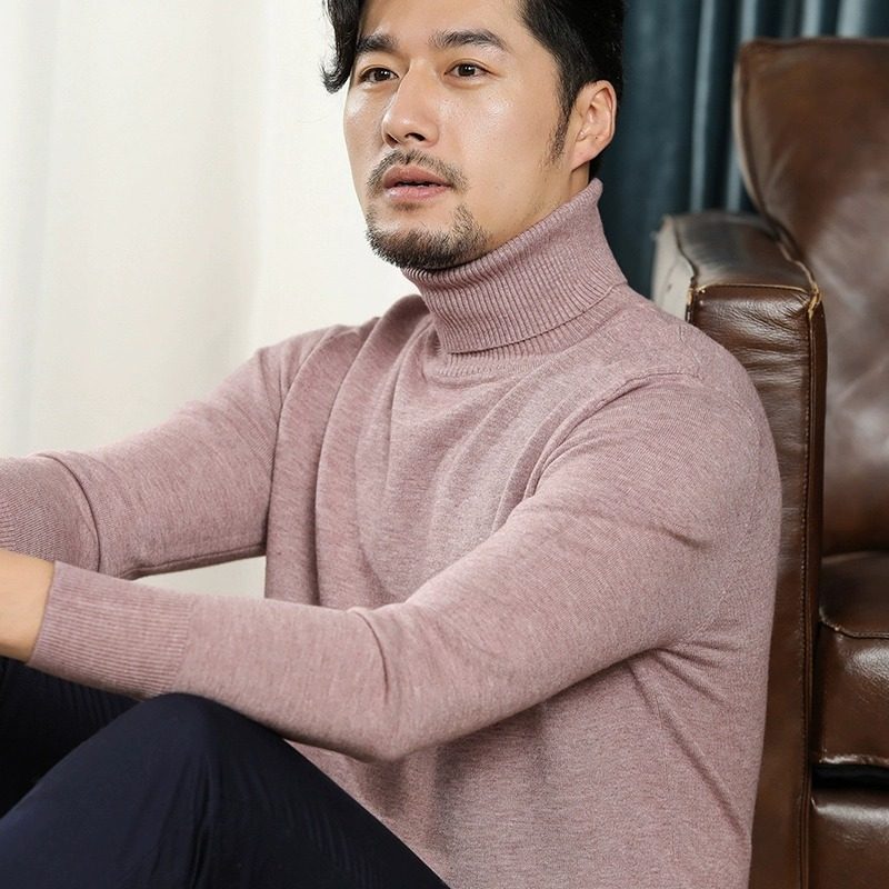 淘秋冬新款加厚羊毛衫男士半高领针织打底衫毛衣男款冬季羊绒衫内搭