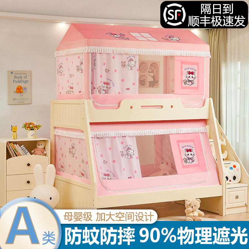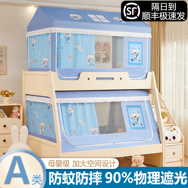 天猫儿童子母床蚊帐遮光床帘一体式上铺双层床帐篷下铺专用梯形遮挡帘