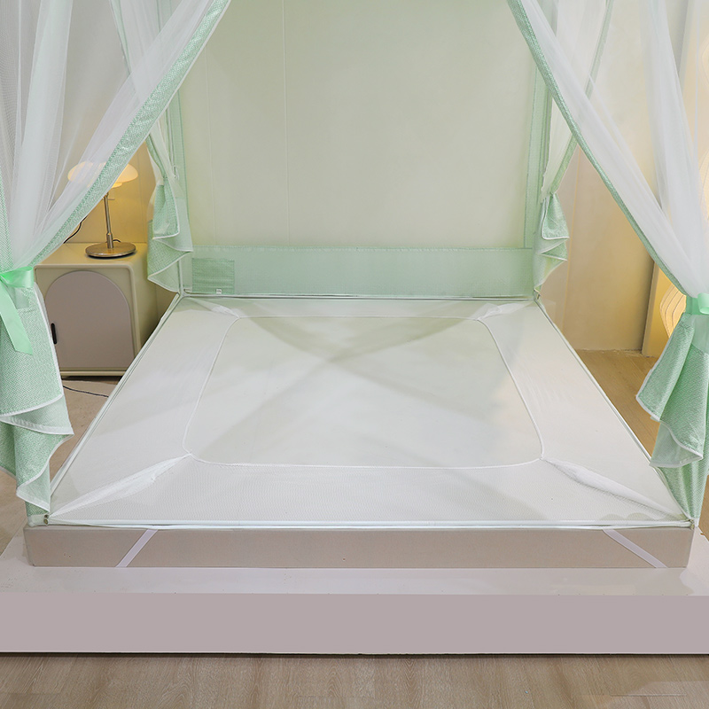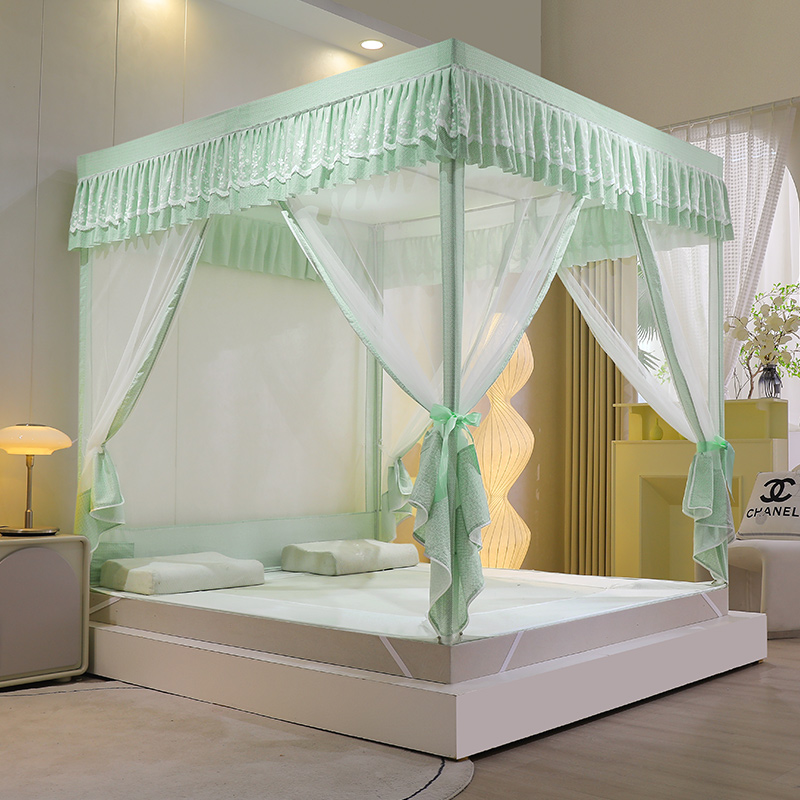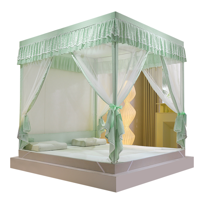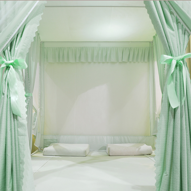 淘新款遮光床帘蚊帐卧室u型三开门回底拉链方帐1.5床幔1.8m加厚支架