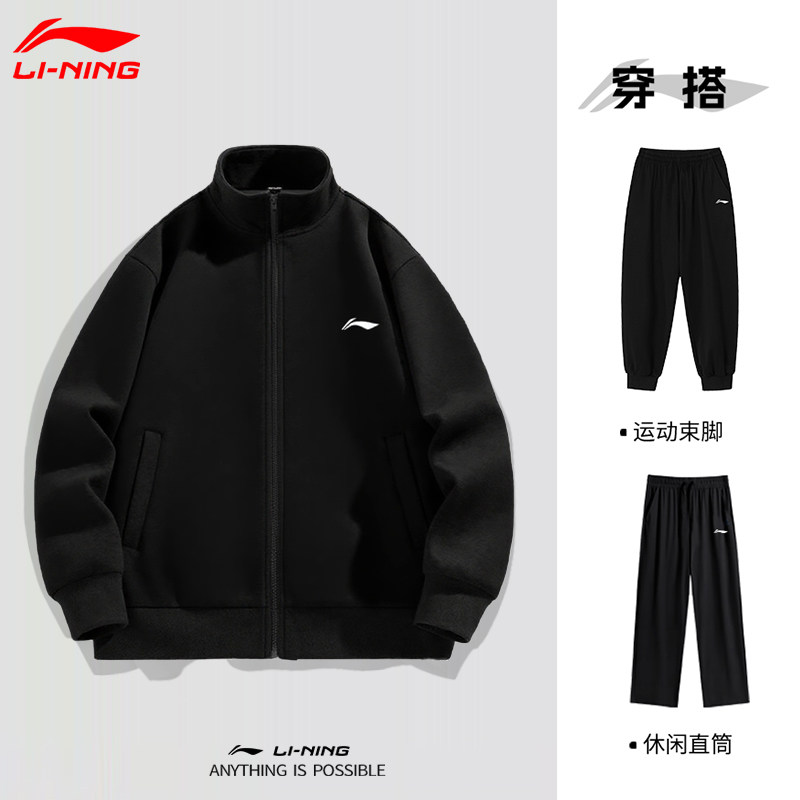 淘宝李宁男装运动套装春秋季新款立领外套男款休闲宽松卫衣卫裤两件套