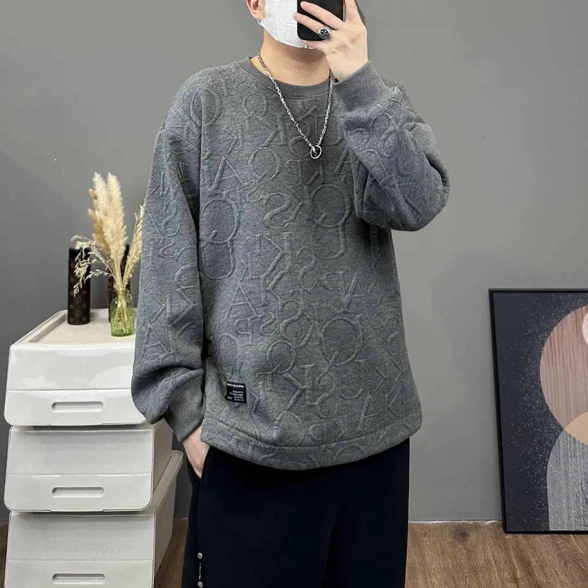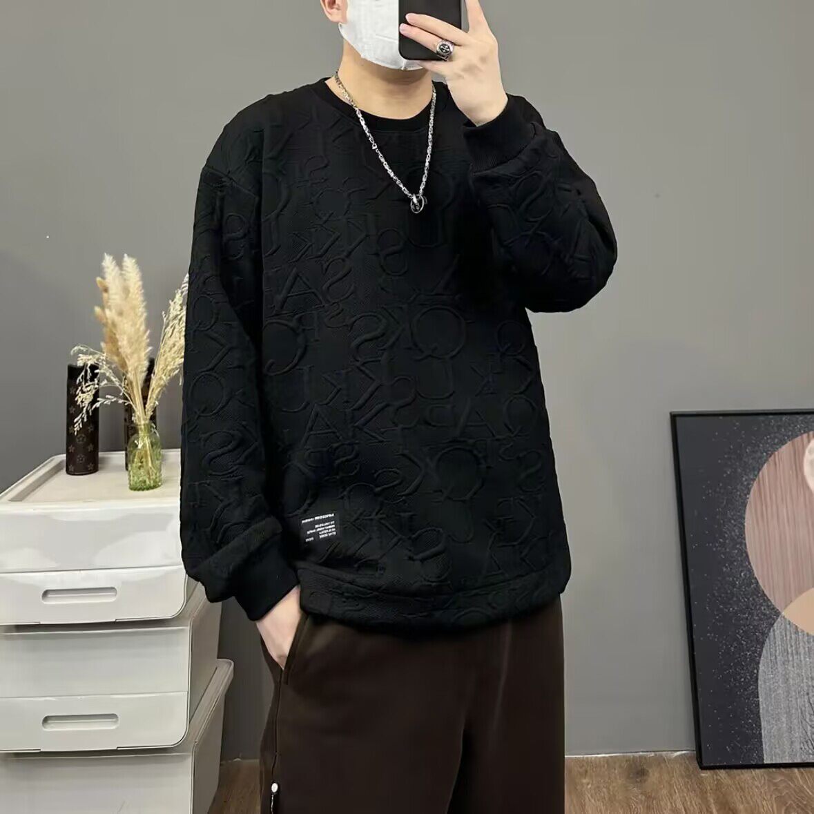 淘宝秋冬新款立体浮雕压花潮牌卫衣男士重磅宽松百搭圆领加绒休闲上衣