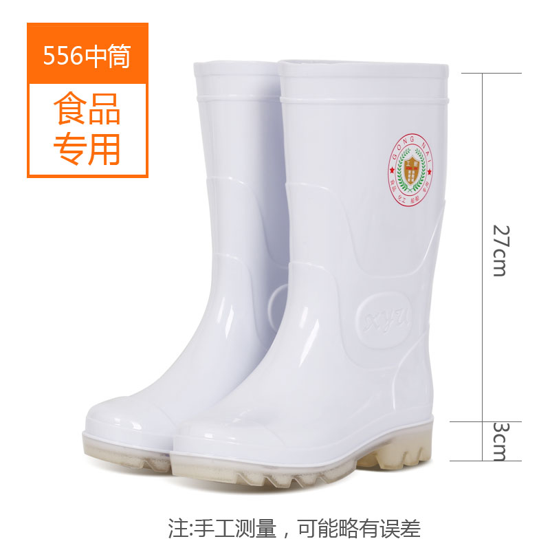 食品卫生靴白色雨鞋男款高筒水鞋女款防油防滑雨靴耐磨防水胶鞋