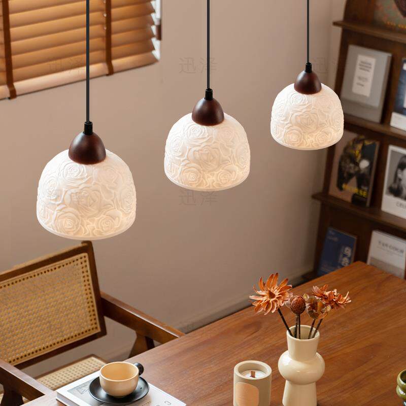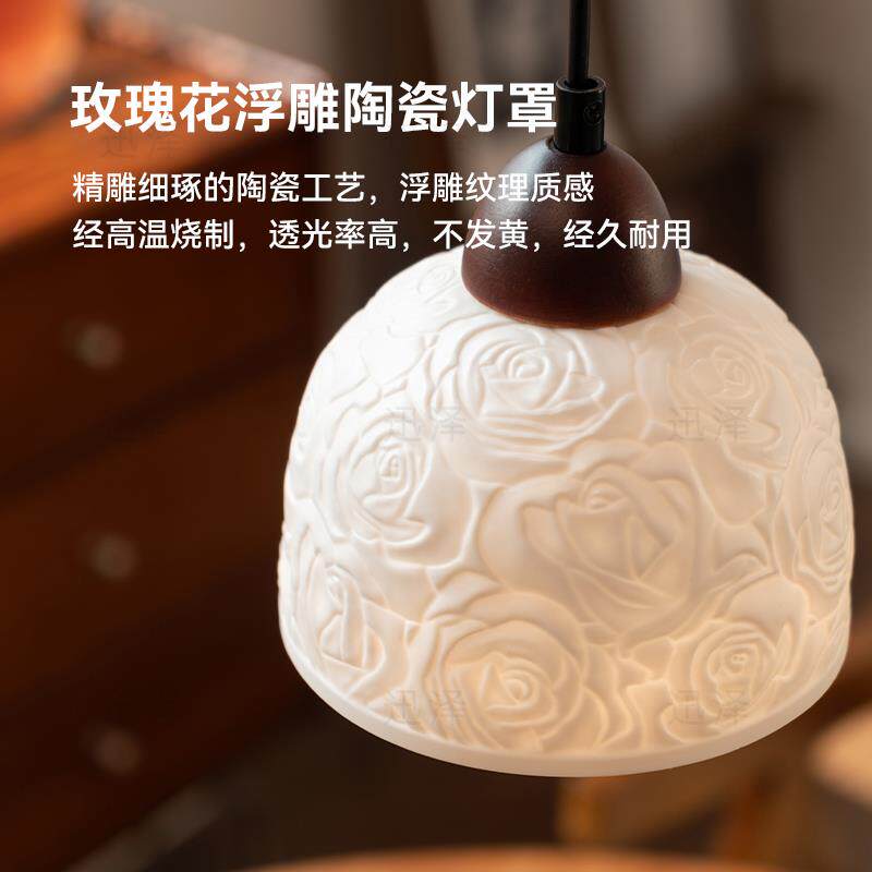 淘宝浮雕陶瓷吊灯法式中古风餐厅灯复古奶油风餐桌吧台灯卧室床头吊灯