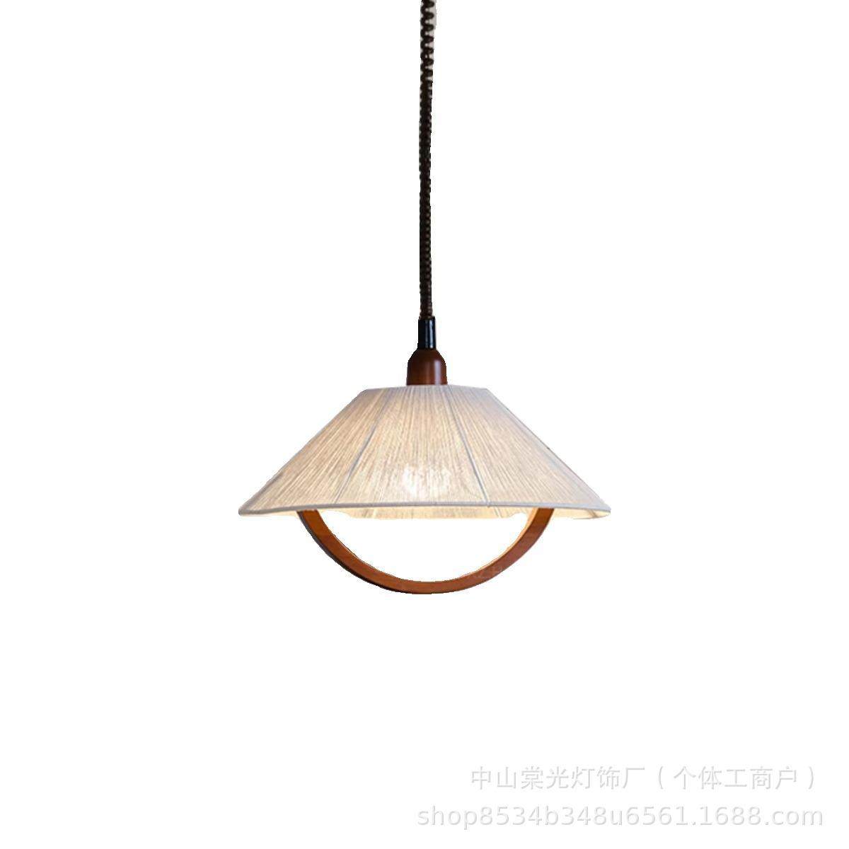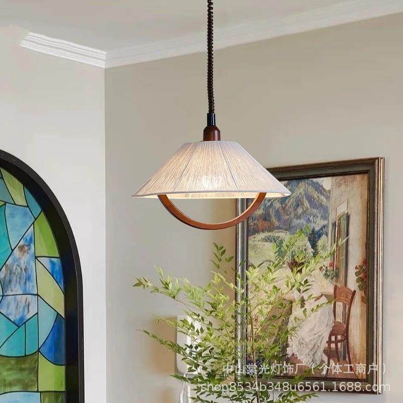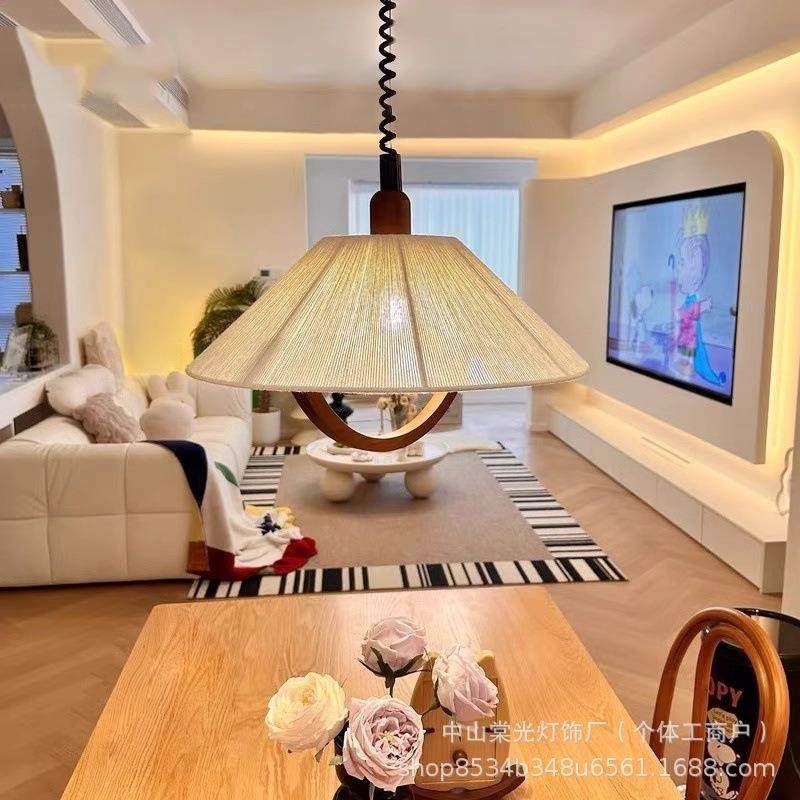 淘宝日式中古棉麻伸缩吊灯卧室书房实木法式美式复古可升降餐厅吧台灯