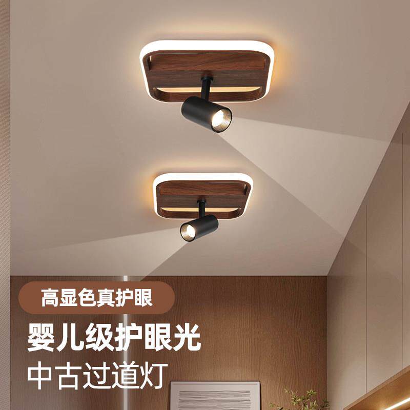 淘宝中古风走道吸顶灯覆古胡桃木色高级感走廊灯法式入户玄关灯阳台灯