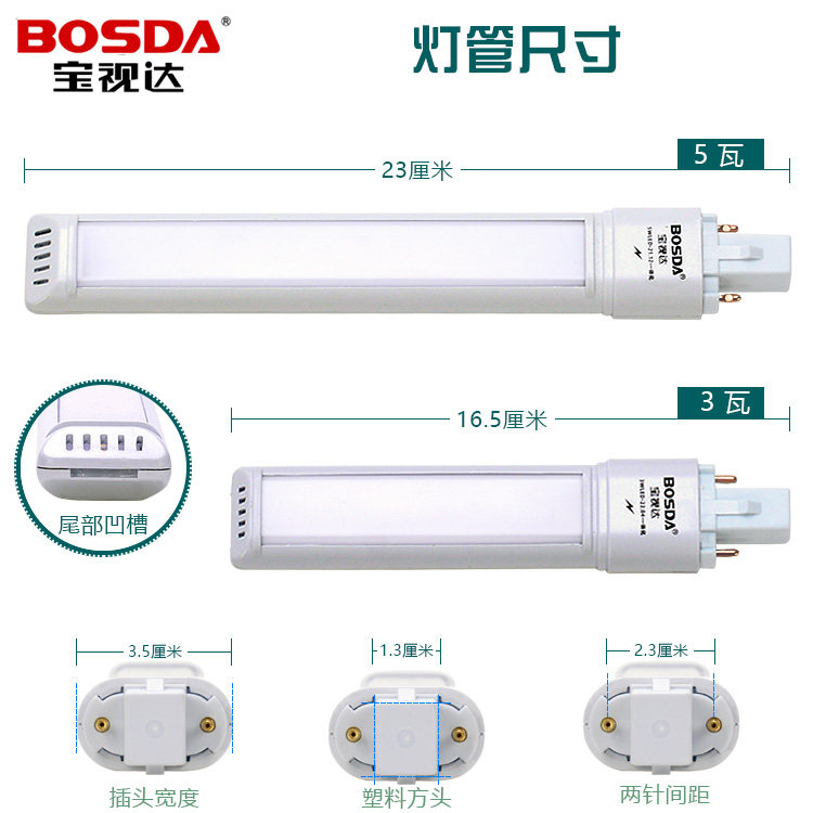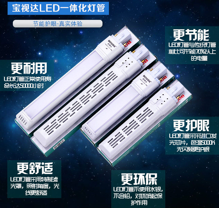 淘宝正品宝视达LED一体化节能灯管台灯护眼两针双针插式浴霸灯泡3W-5W