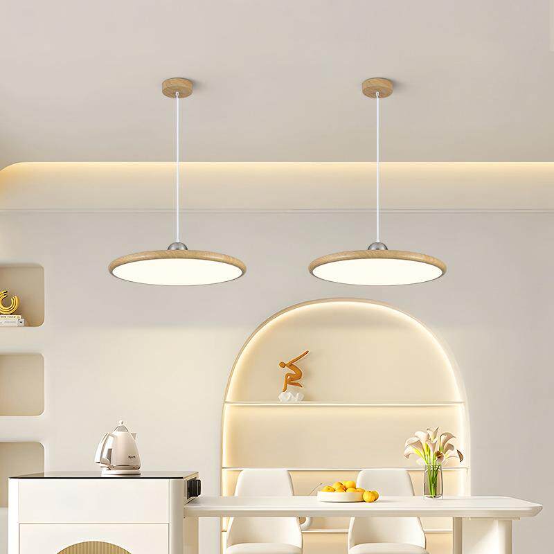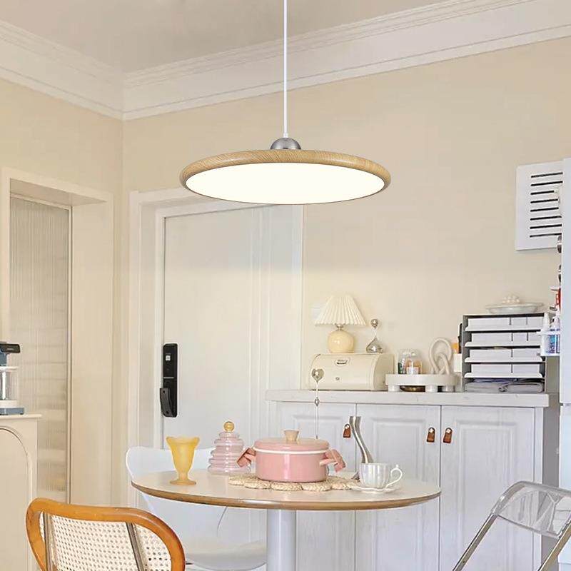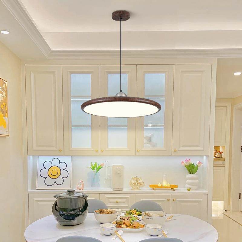 淘宝飞碟餐厅灯北欧原木纹圆盘吊灯现代简约民宿吧台灯全光谱护眼灯具