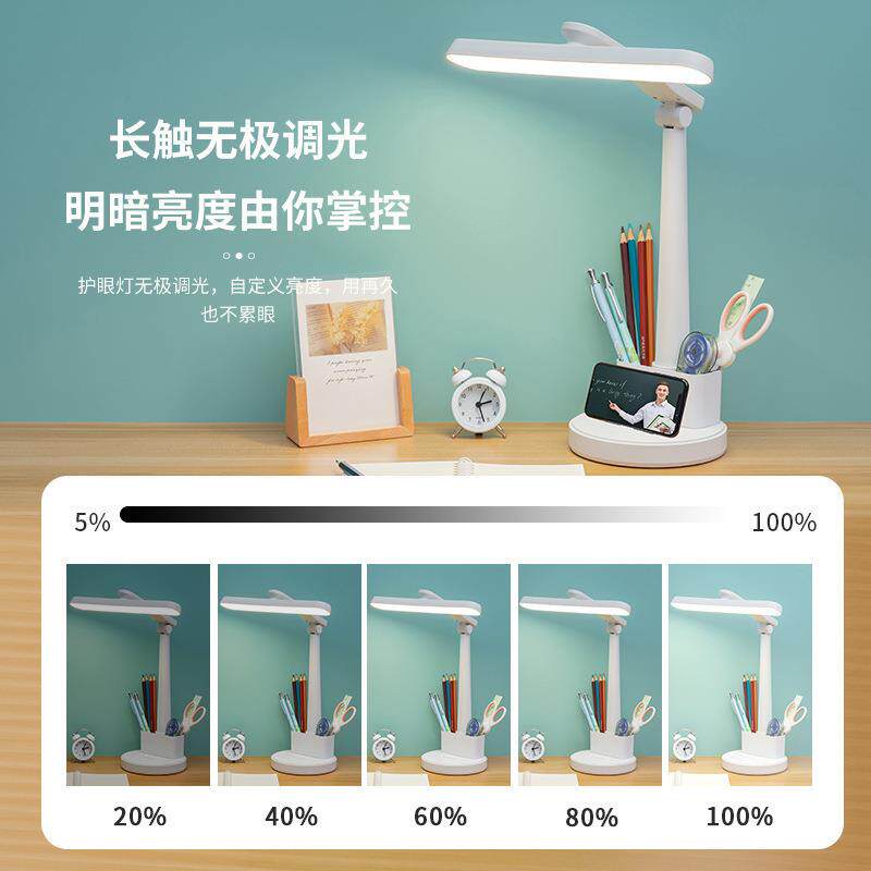 D学生护眼台灯专为学习场景设计,采用高显色LED光源,无频闪、无蓝光危害,有效缓解用眼疲劳,守护学生视力健康。灯头与灯臂支持多角度灵活旋转,可精准调节照明方向,适配不同读写姿势。底座稳固,适用于书桌、宿舍等多种环境,节省空间。支持充电与插电两用模式,内置大容量锂电池,断电后仍可续航数小时,使用更自由。同时具备多档亮度调节及暖光/白光切换功能,兼顾专注学习与温馨氛围照明需求。简约时尚外观,既是实用台灯,也是桌面装饰,陪伴学生高效学习每一天。