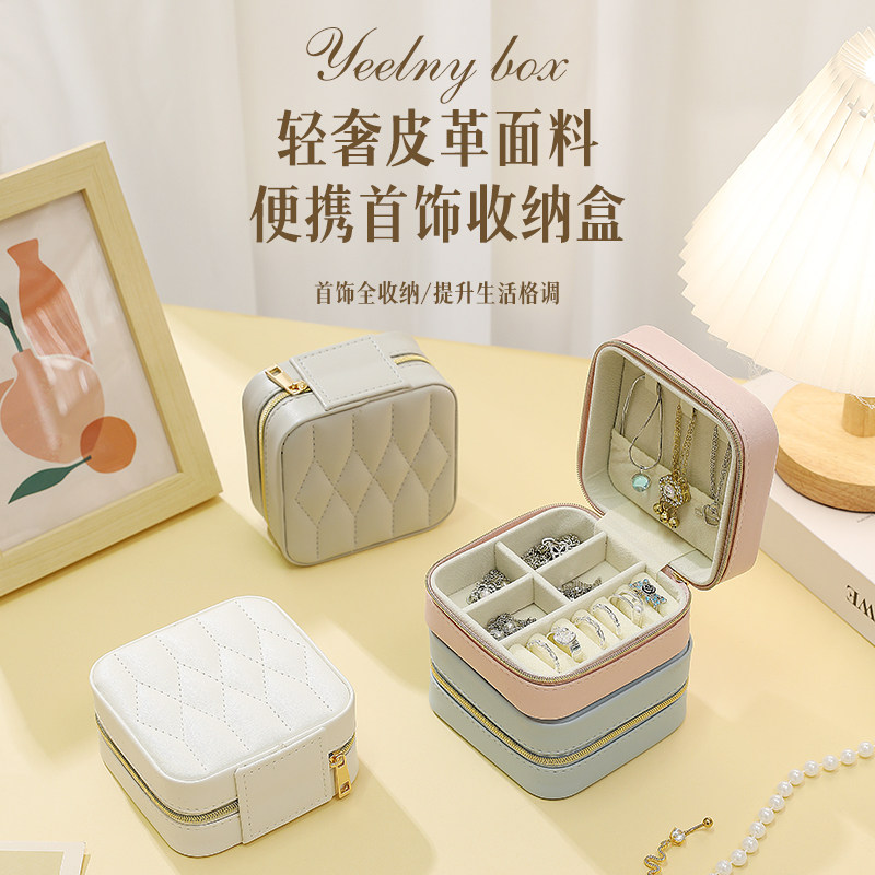 天猫珠宝首饰盒小型便携高档精致新款耳钉耳饰项链戒指饰品收纳盒黄金