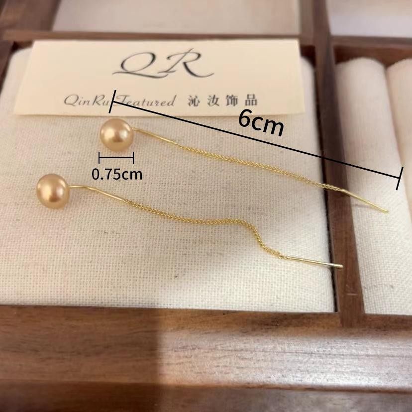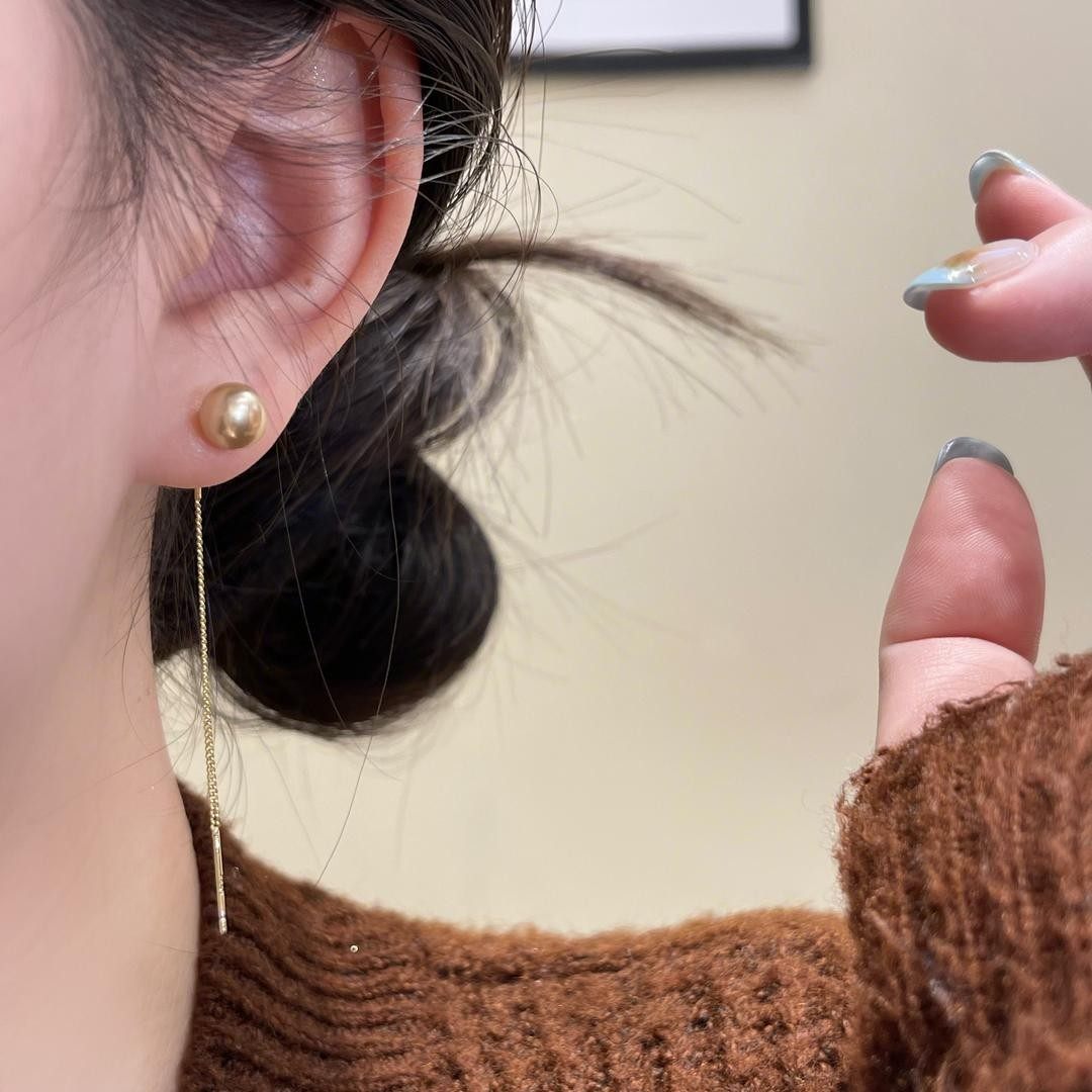 天猫秋冬新款香槟金色珠珠长款耳线2024新款耳环耳钉高级感简约耳饰女