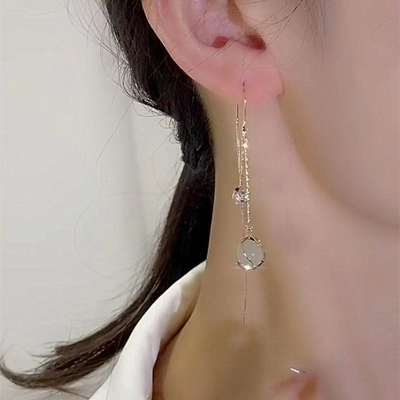 淘宝时尚猫眼石流苏耳线超仙长款圆脸耳环2025年新款气质轻奢小众耳饰