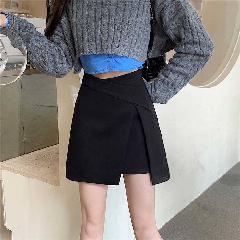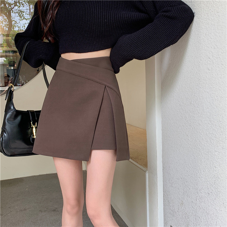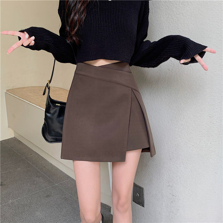 淘宝大码不规则a字裙半身裙裤女胖mm高腰显瘦设计感开叉咖色短裤裙夏