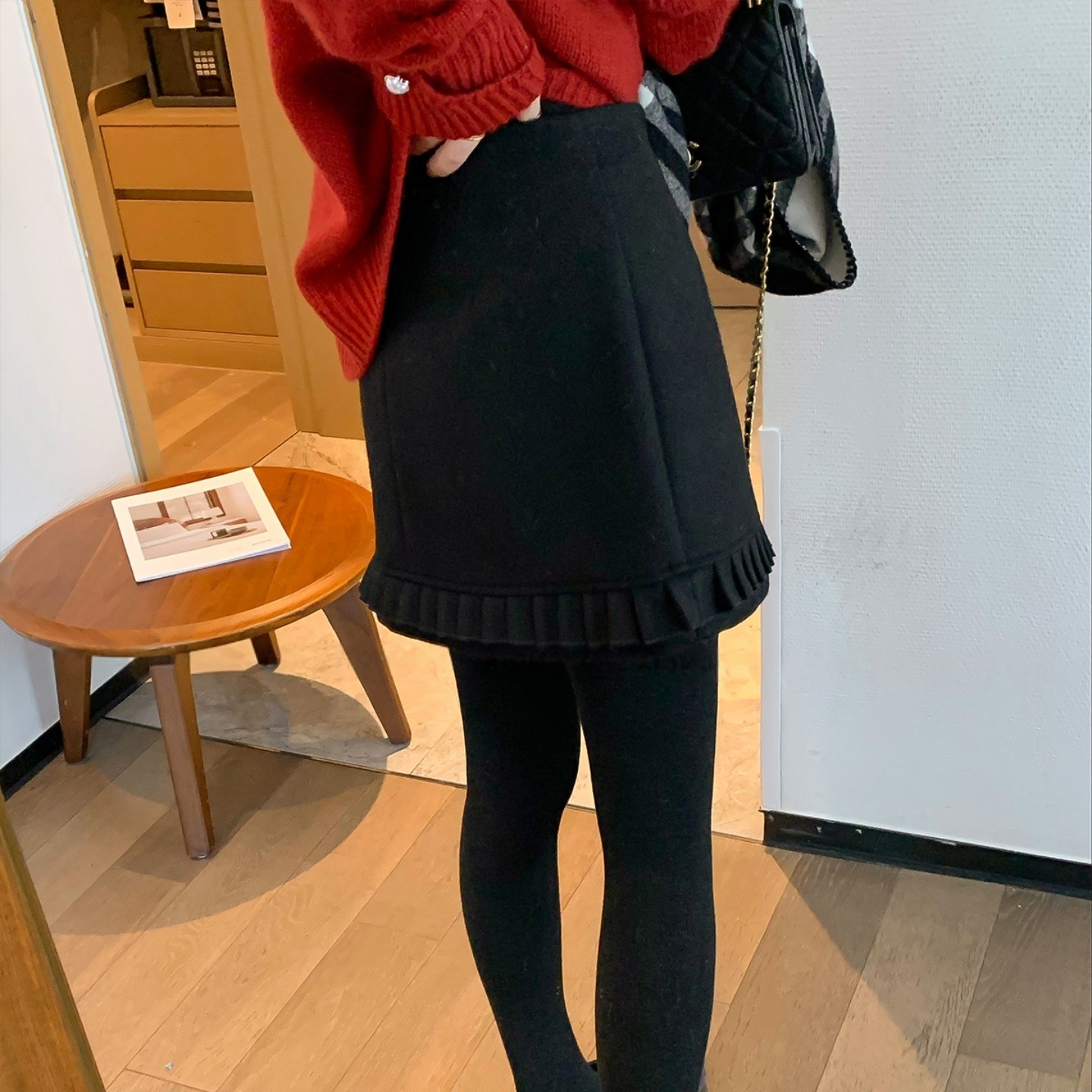 淘毛呢百搭花苞裙女2025秋冬新款时尚减龄内衬防走光短裙半身裙