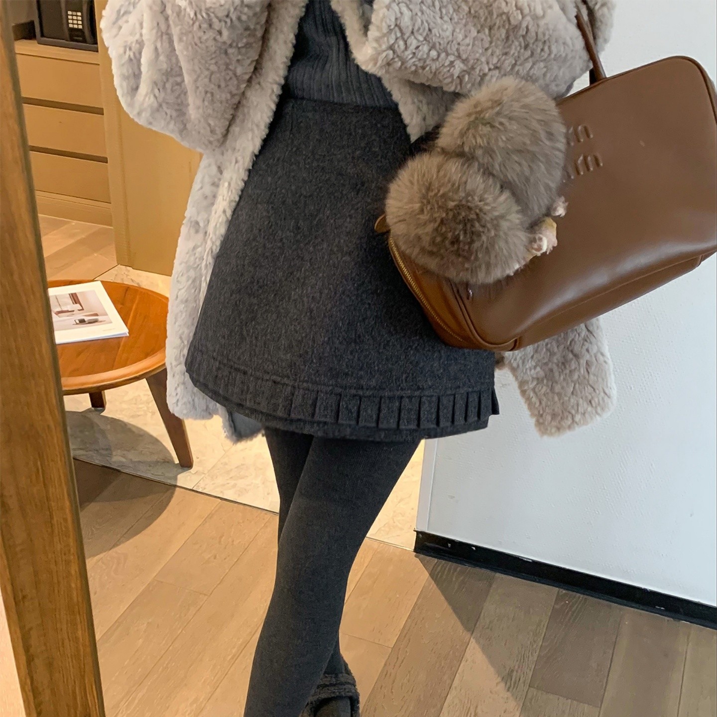 毛呢百搭花苞裙女2025秋冬新款时尚减龄内衬防走光短裙半身裙
