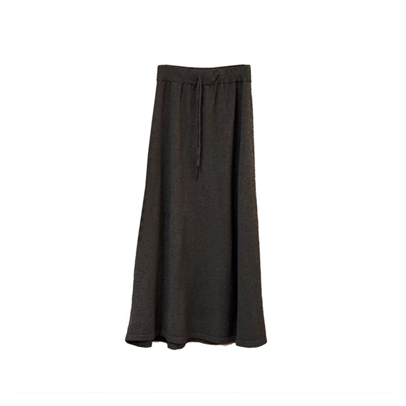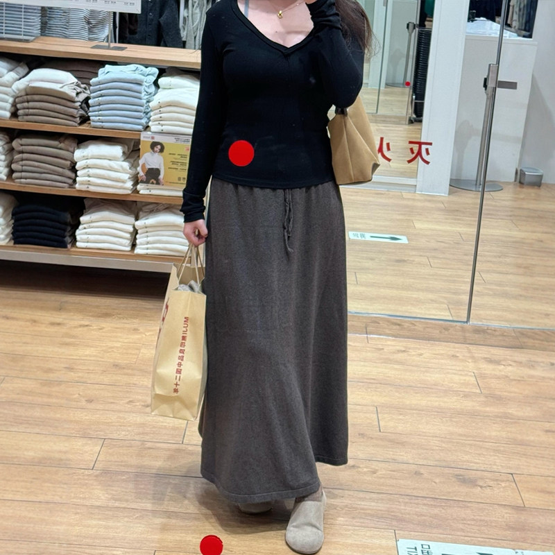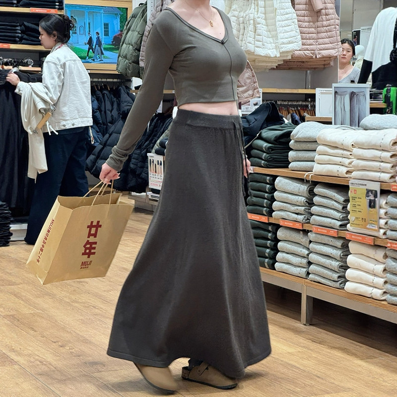 大码A字版型口袋纽扣松紧腰垂感中长款显瘦百搭羊毛针织半身裙