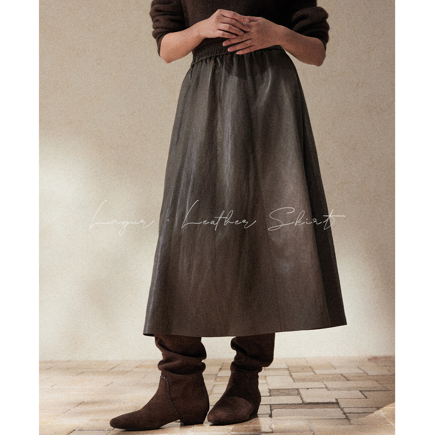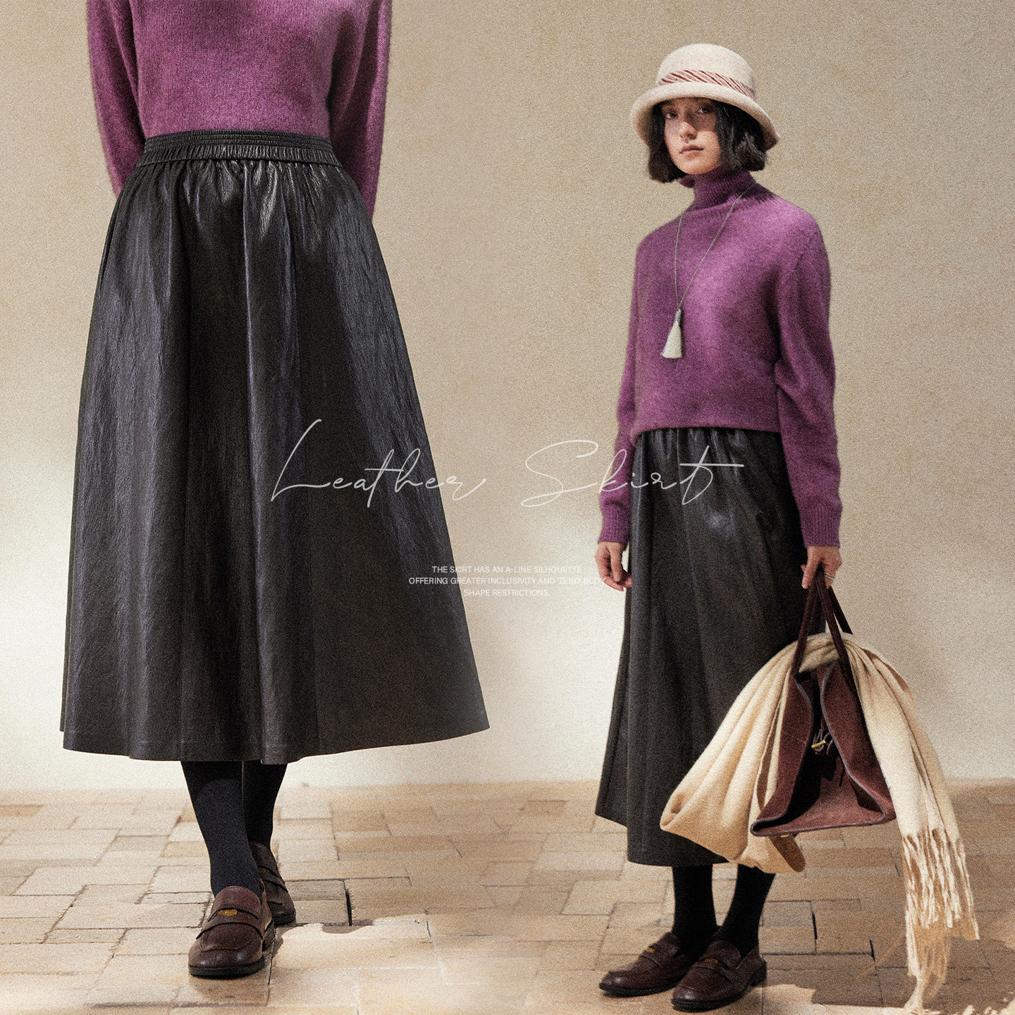 淘宝Lagur<自然温润环保皮>中长款A字伞裙半身裙女2025新款秋冬皮裙