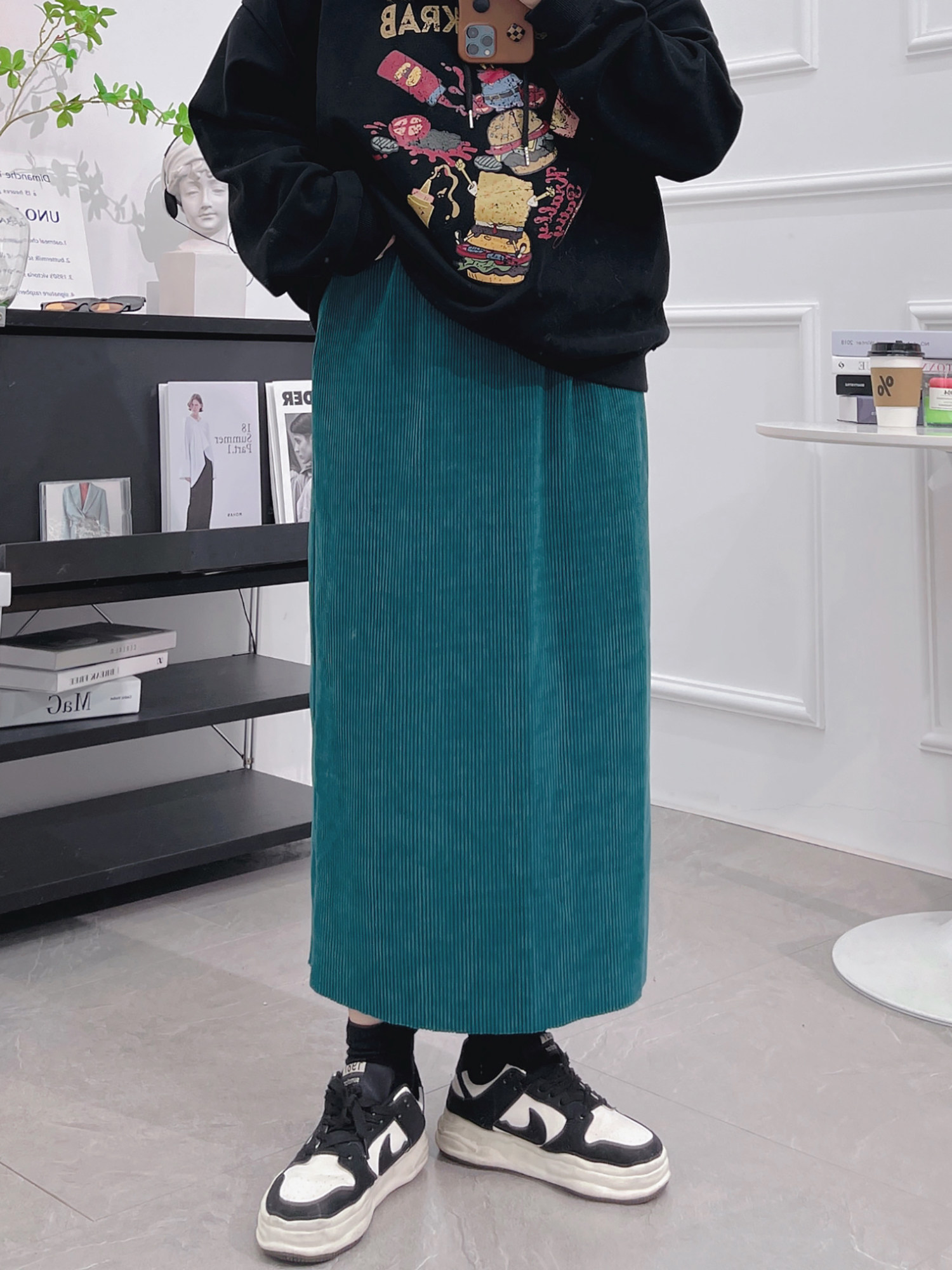 淘宝大码高腰灯芯绒半身裙女士秋冬新款胖mm遮肚显瘦中长款直筒a字裙