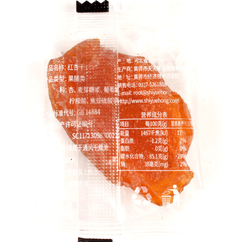 十月红杏干无核杏肉脯精选优质红杏,经传统工艺自然晾晒与低温烘干制成,保留杏肉醇厚香甜与细腻口感。无核设计,食用更便捷,果肉厚实有嚼劲,酸甜适中,富含膳食纤维与天然果糖。采用独立小包装,锁住新鲜,防潮保鲜,方便携带与分享。无论是办公室解馋、居家休闲,还是旅途小食,都是健康美味的理想选择。不含防腐剂,天然果香浓郁,老少皆宜。十月红杏干,以匠心工艺呈现自然本味,让每一口都充满阳光与果实的馈赠,是日常零食中兼顾美味与健康的优质蜜饯果干。
