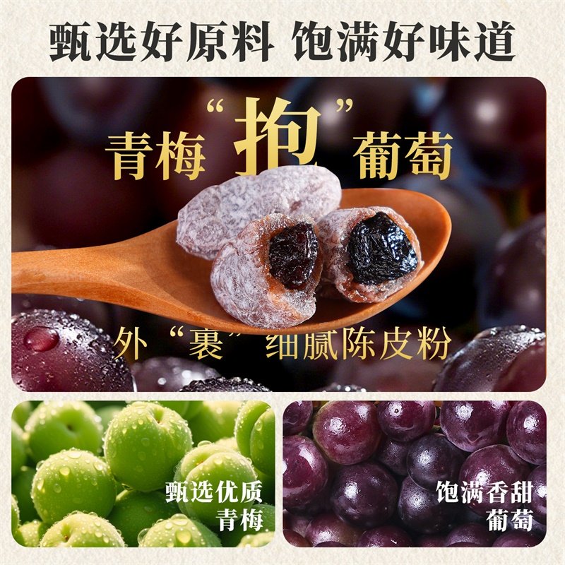 天猫百草味陈皮梅子抱葡萄陈皮梅子抱葡萄果干蜜饯梅子话梅干乌梅零食