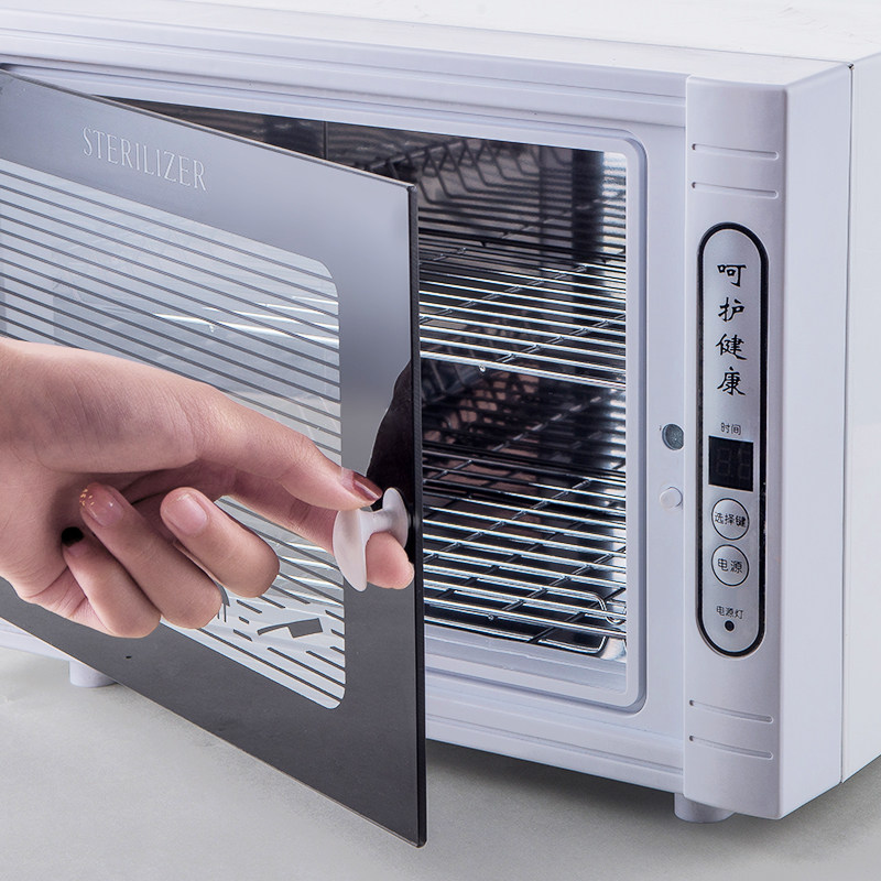 迷你美甲消毒紫外线臭氧杀菌柜是一款专为美容院、发廊、修脚店及理发店设计的小型专业消毒设备。采用紫外线(UV-C)与臭氧双重杀菌技术,高效灭杀细菌、病毒和真菌,确保美甲工具、推剪、镊子、指甲锉等用品的卫生安全。柜体小巧精致,节省空间,适合各类小型经营场所使用。内置安全防护机制,开门自动断电,避免紫外线外泄,保障操作安全。操作简单,一键启动,消毒快速彻底,有效防止交叉感染,提升顾客信任度与店铺专业形象。是美容美业健康管理的理想之选。