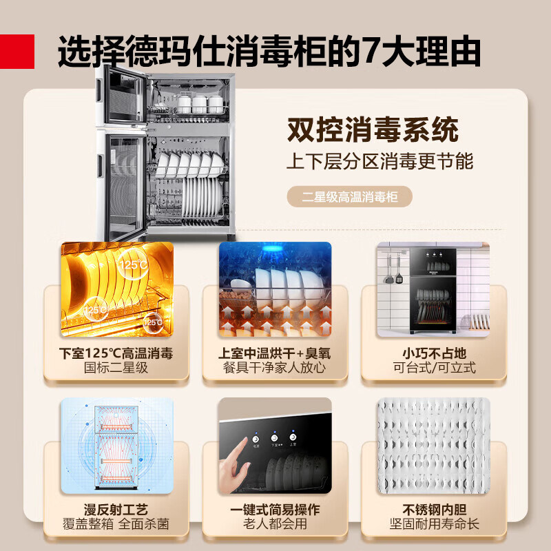 天猫德玛仕家用消毒柜立式高温二星小型商用碗柜消毒台式餐具茶杯碗筷