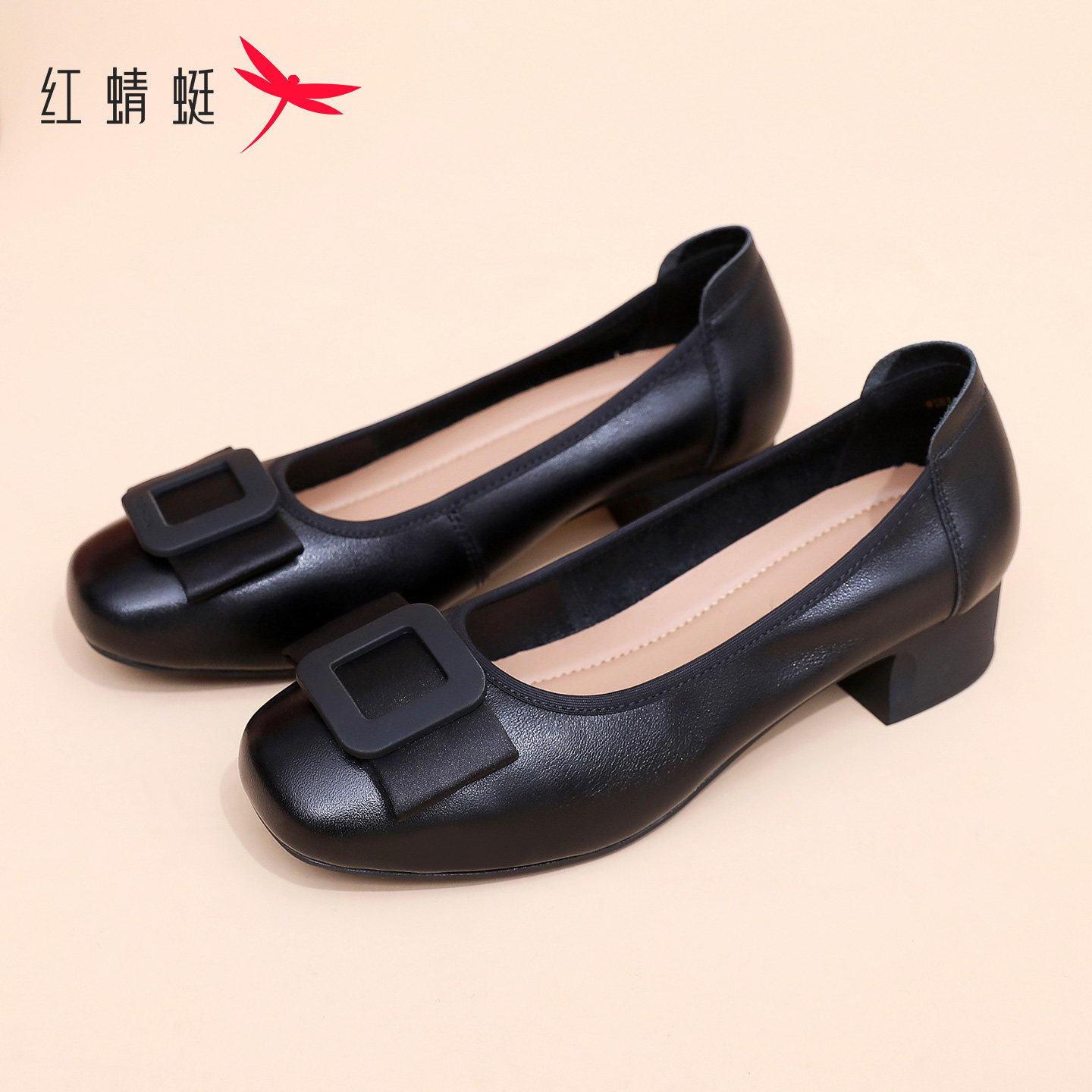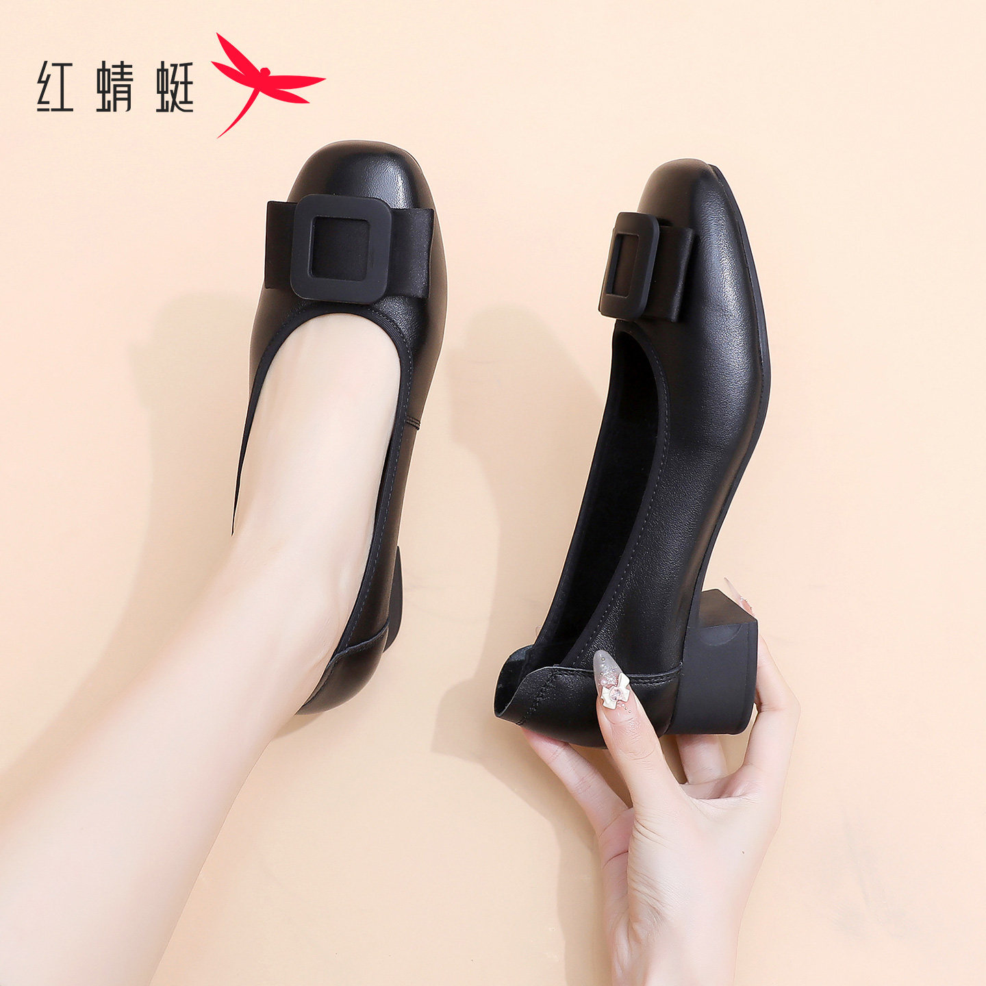 天猫红蜻蜓女士单鞋2025新款真皮软底粗跟职业通勤皮鞋中年妈妈舒适鞋