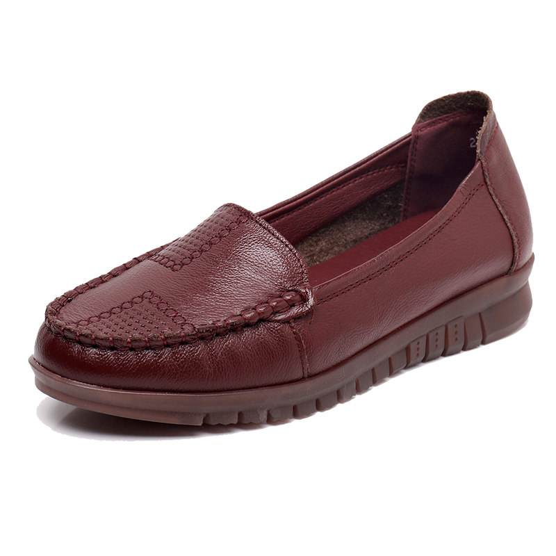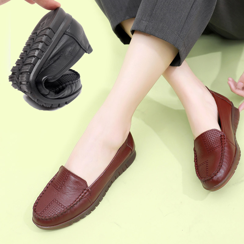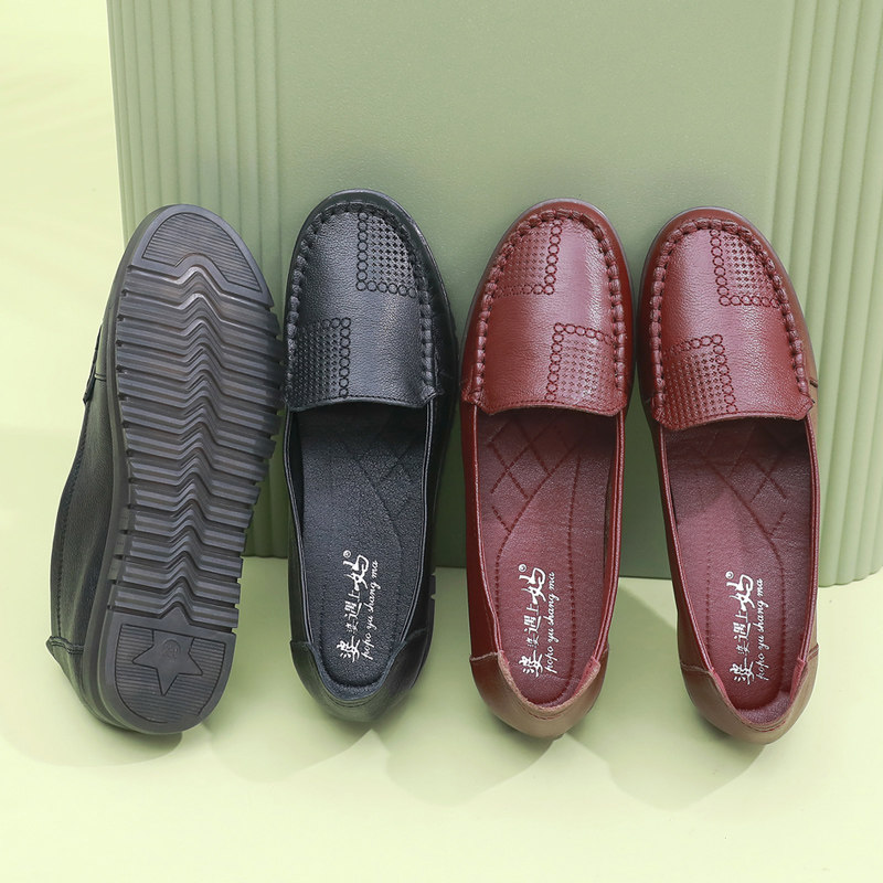 天猫真皮妈妈单鞋秋款中年女鞋平底舒适老人皮鞋牛筋软底舒适防滑大码