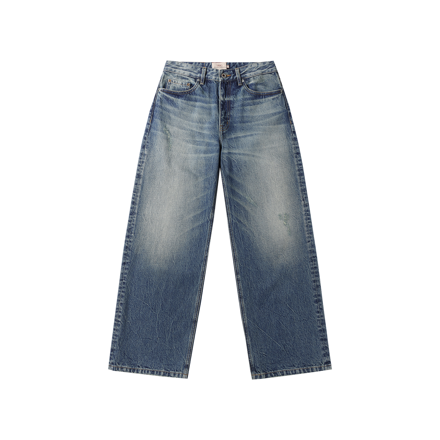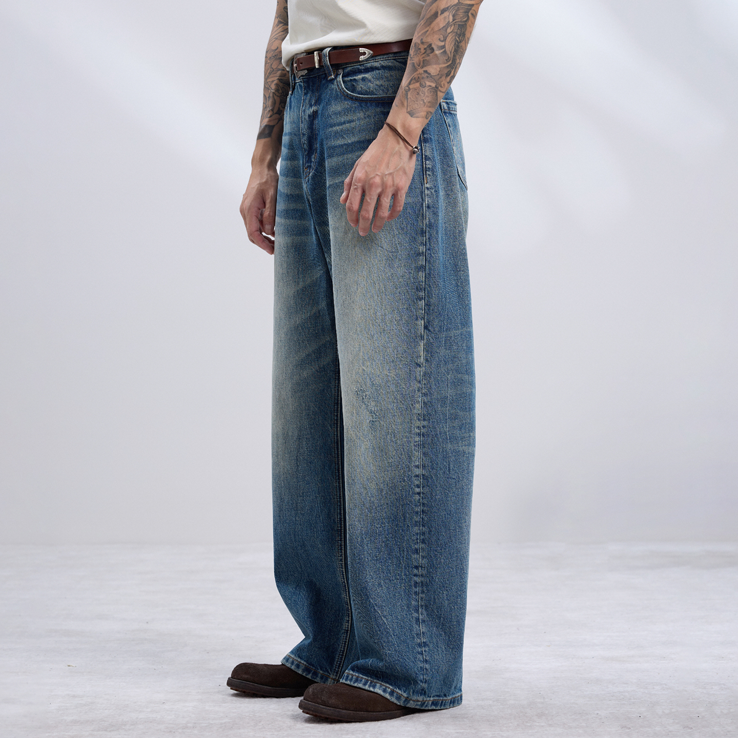 淘宝水洗重磅深蓝色牛仔裤|13oz冈山宽幅休闲长裤男直筒宽松中高腰秋