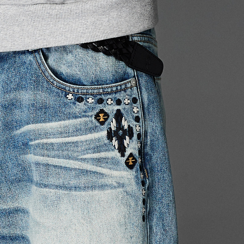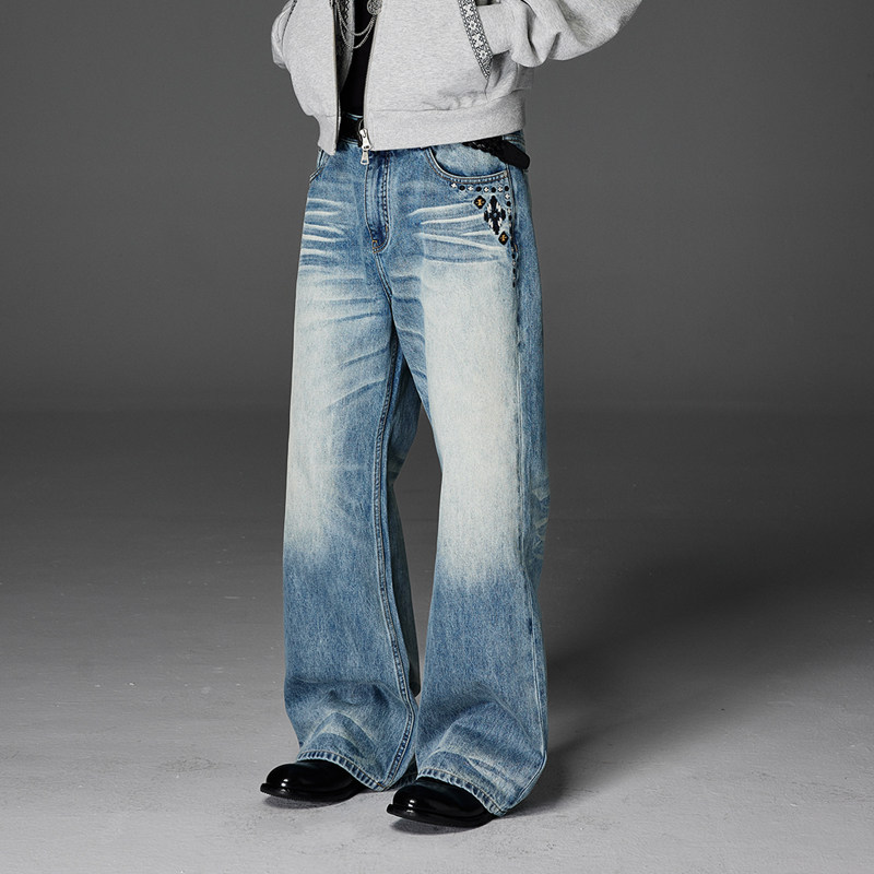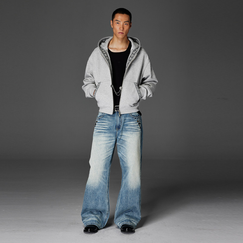 CATSSTAC图腾刺绣水洗牛仔裤,专为追求个性与舒适的男士设计。采用优质水洗牛仔面料,柔软亲肤,穿着透气自在。宽松直筒版型有效修饰腿型,视觉拉长腿部线条,适合多种身材。裤身点缀精致图腾刺绣,融合潮流元素与民族风情,彰显独特品味。做旧水洗工艺赋予牛仔裤复古质感,百搭易穿,轻松驾驭休闲、街头等多种风格。无论是搭配T恤、卫衣还是夹克,都能展现随性不羁的型男魅力。CATSSTAC以匠心工艺与时尚设计,打造兼具舒适度与潮流感的牛仔裤,成为日常穿搭的理想选择。
