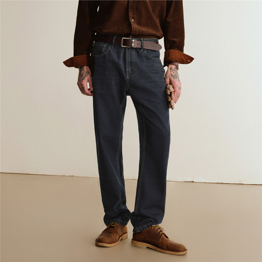 三福2025冬季男士猫须洗水休闲牛仔裤都市休闲直筒长裤裤子510100