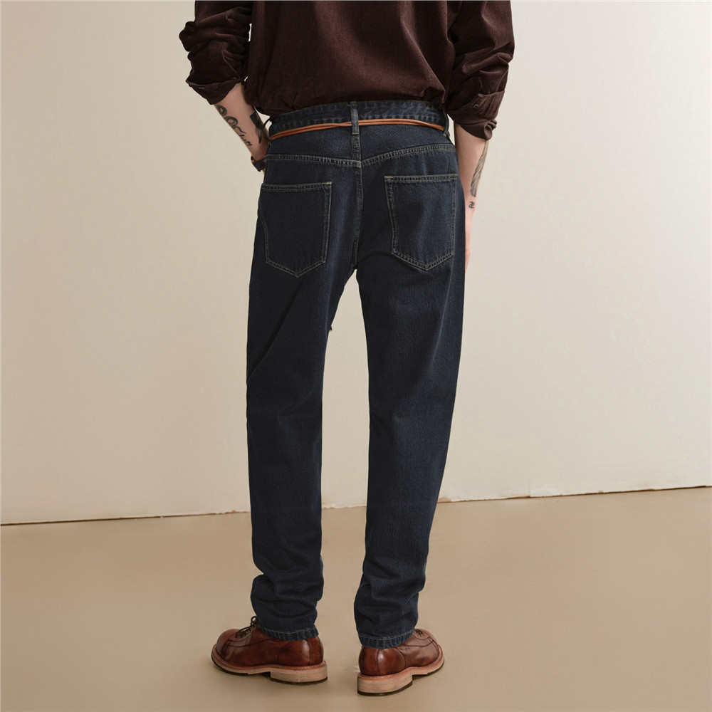 水洗重磅深蓝色牛仔裤|13oz冈山宽幅休闲长裤男直筒宽松中高腰秋