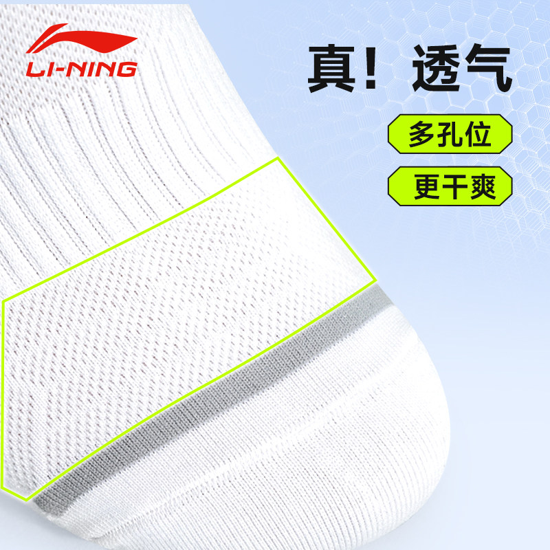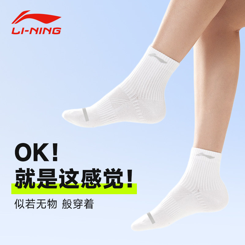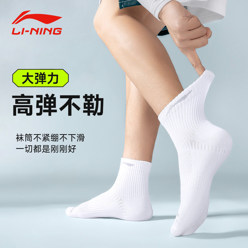 天猫李宁袜子男士青少年学生乒乓球中筒袜专业防臭吸汗跑步运动白色女