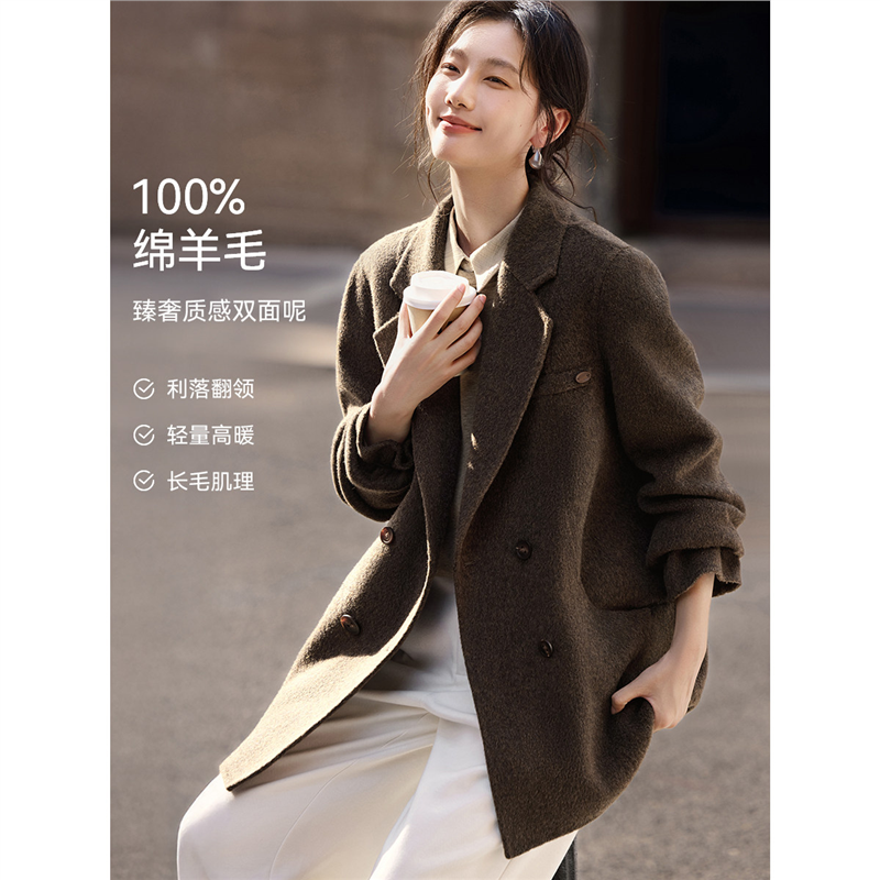 淘宝专柜正品轻奢通勤羊毛中长款大衣女秋冬新款正式场合西装毛呢外套
