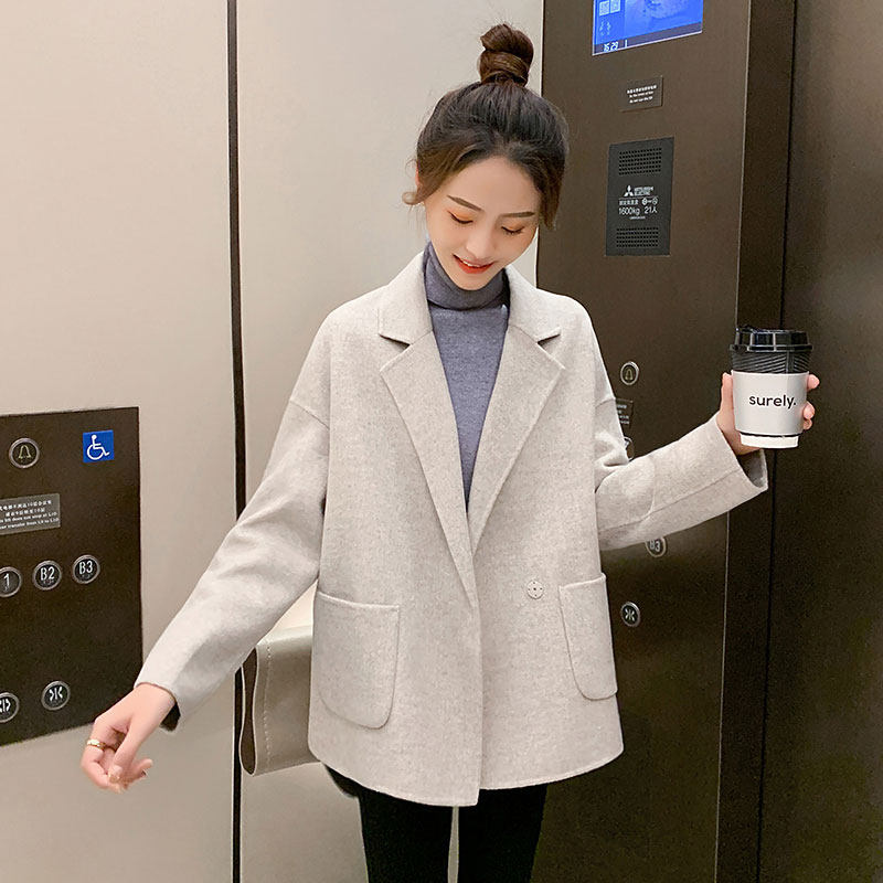 毛呢外套女短款西装修身气质优雅休闲居家聚会新款羊毛绒大衣西服