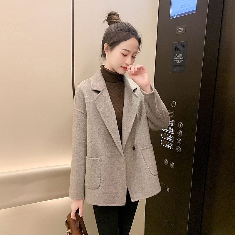 2025秋冬反季双面羊绒大衣女短款小个子西装领呢子妈妈羊毛呢外套