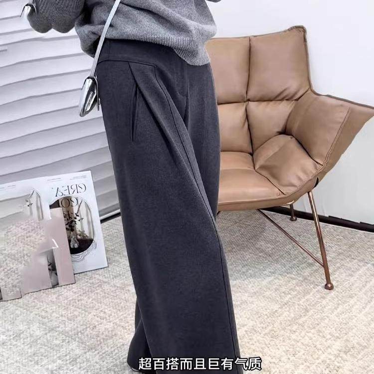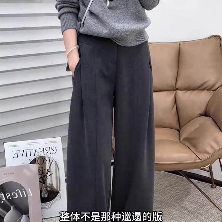 淘宝灰色毛呢阔腿西装裤女2025秋冬新款高腰大码显瘦垂感窄版直筒裤子
