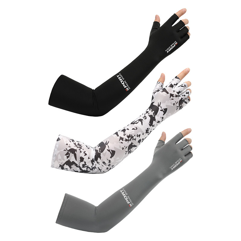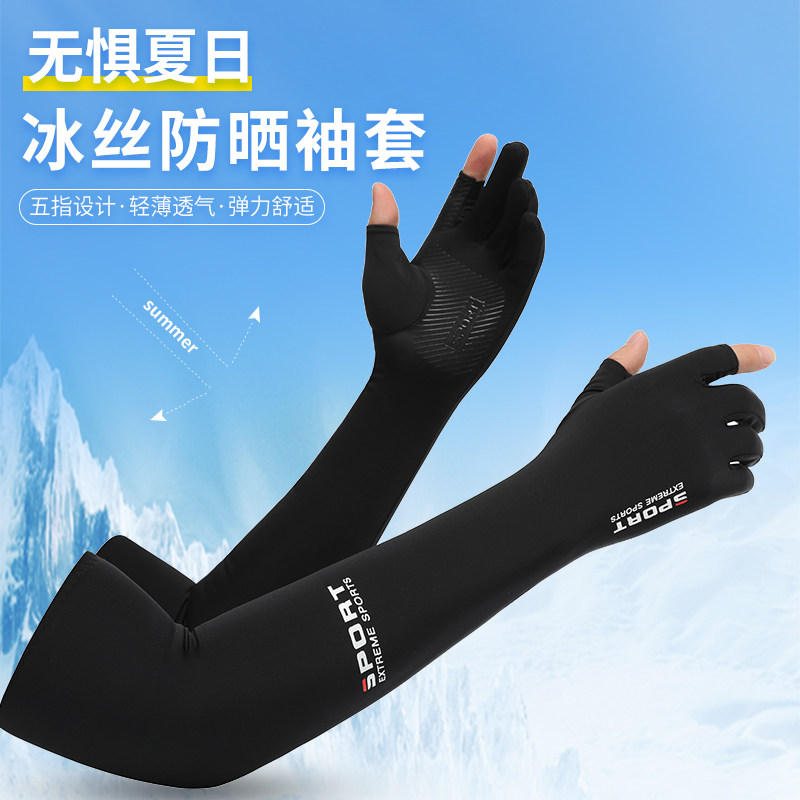 淘宝春夏季冰袖漏二指手套男女士防晒骑行长款冰丝袖套开车防滑手套男