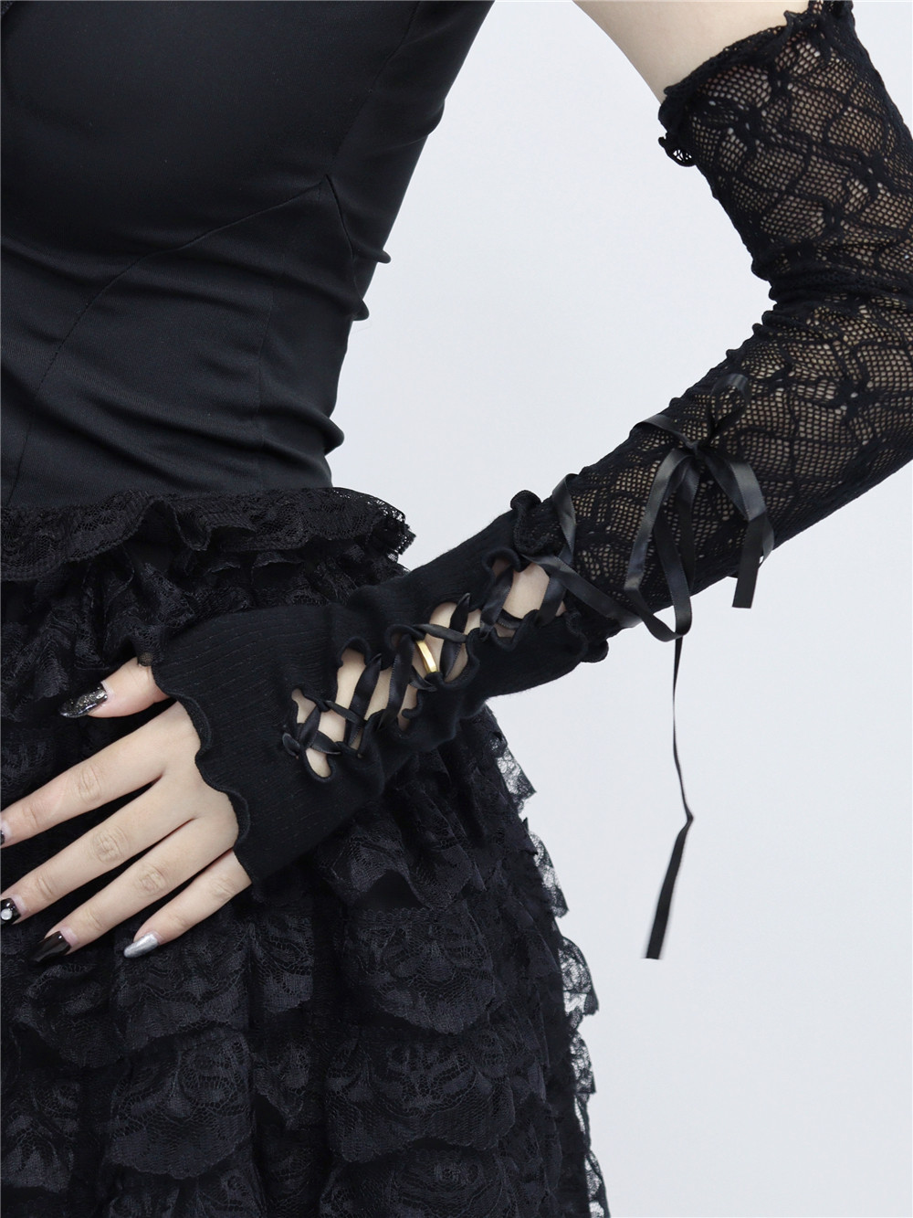 淘芭蕾风y2k洛丽塔手套白色蕾丝袖套女薄款夏季防晒辣妹绑带长露指