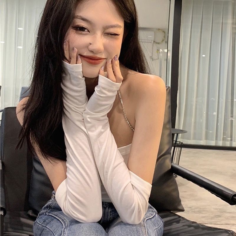 淘宝莫代尔防晒袖套女纯色春秋冬新款辣妹露手指袖套爵士舞套袖遮手臂
