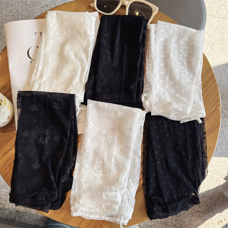 天猫夏季户外开车冰丝袖套韩国百搭防晒纯色蕾丝袖套手套防紫外线冰袖