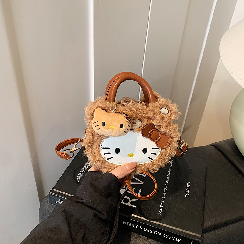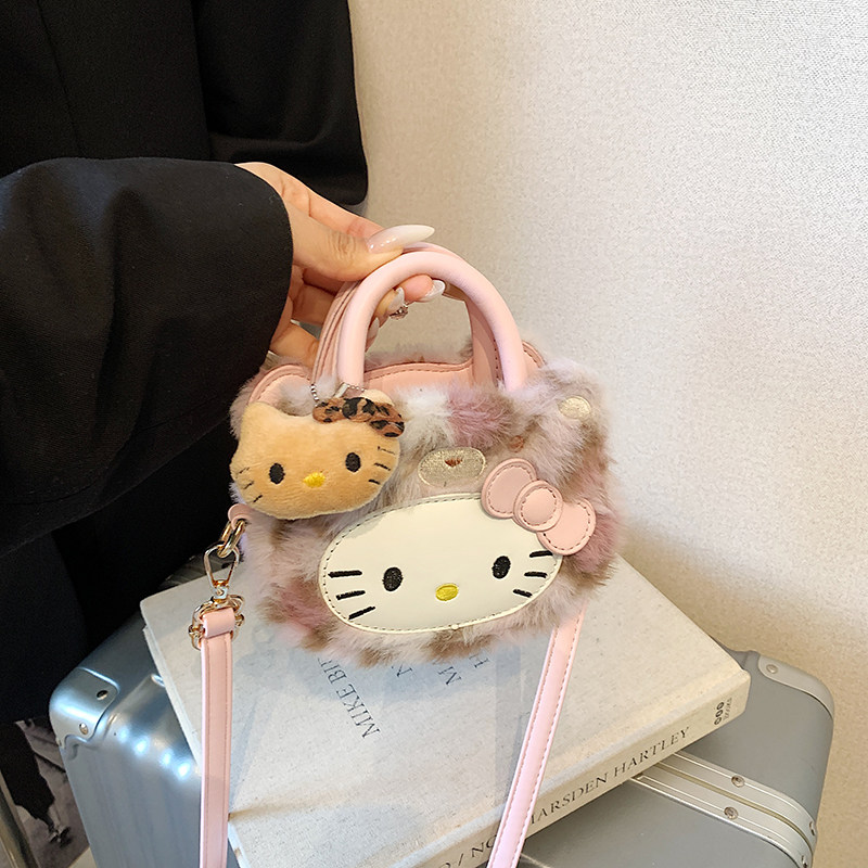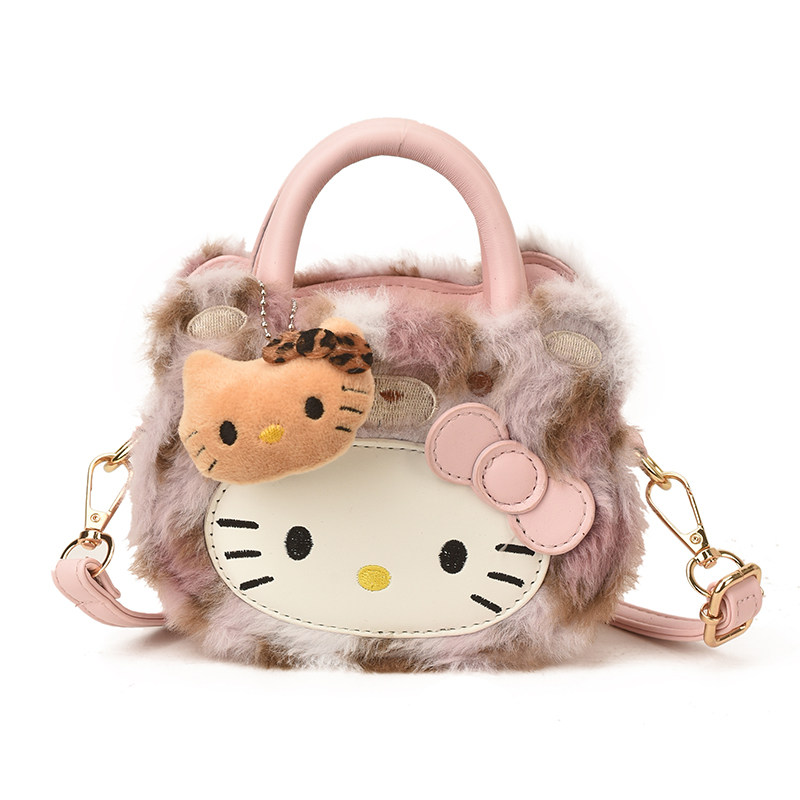 淘宝可爱女童包包2026新款儿童kt猫豹纹斜挎包小女孩卡通毛绒手提挎包