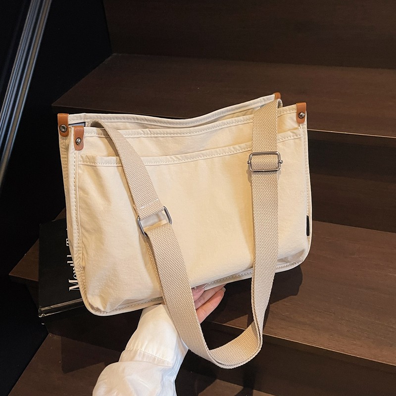 淘宝简约大容量帆布包包女2025新款夏天休闲单肩包学生通勤斜挎邮差包