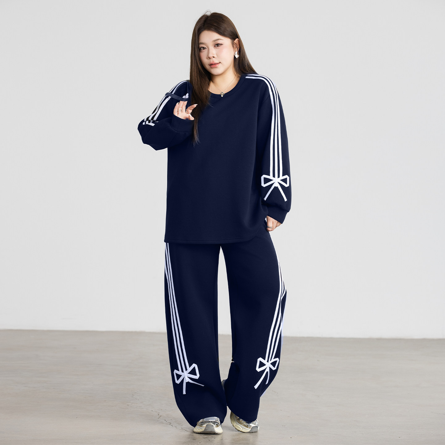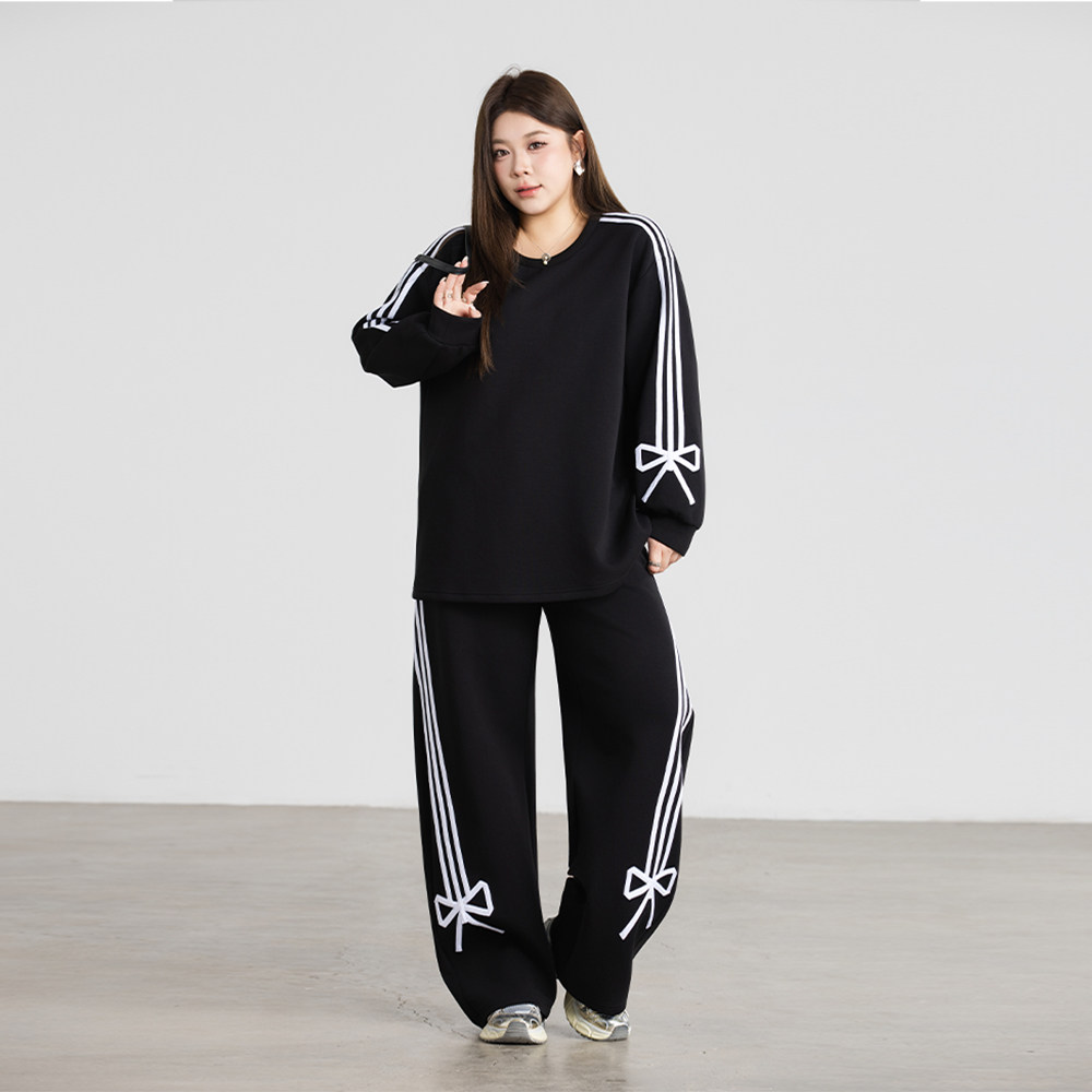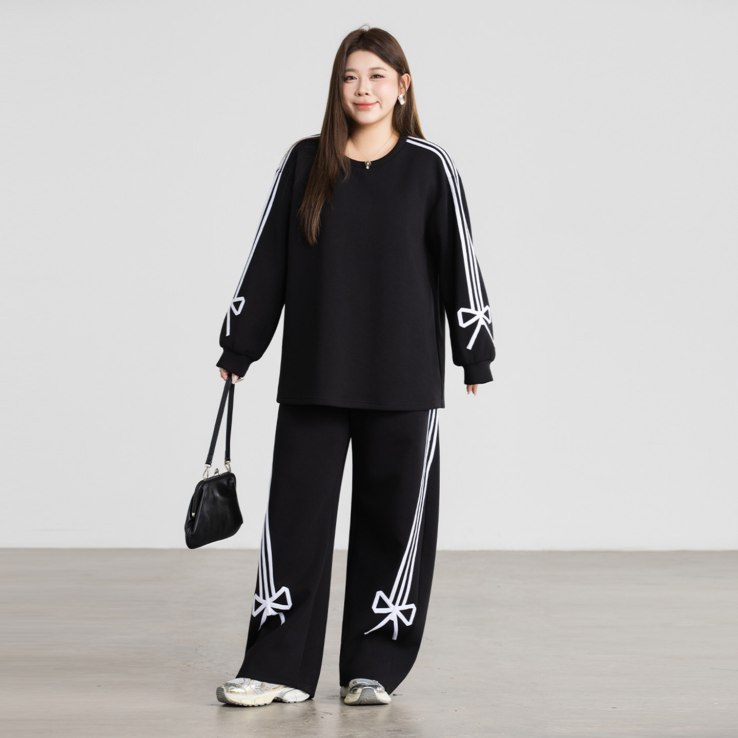 淘宝蝴蝶结织带时尚大码套装女春新款胖mm宽松卫衣+休闲裤运动两件套