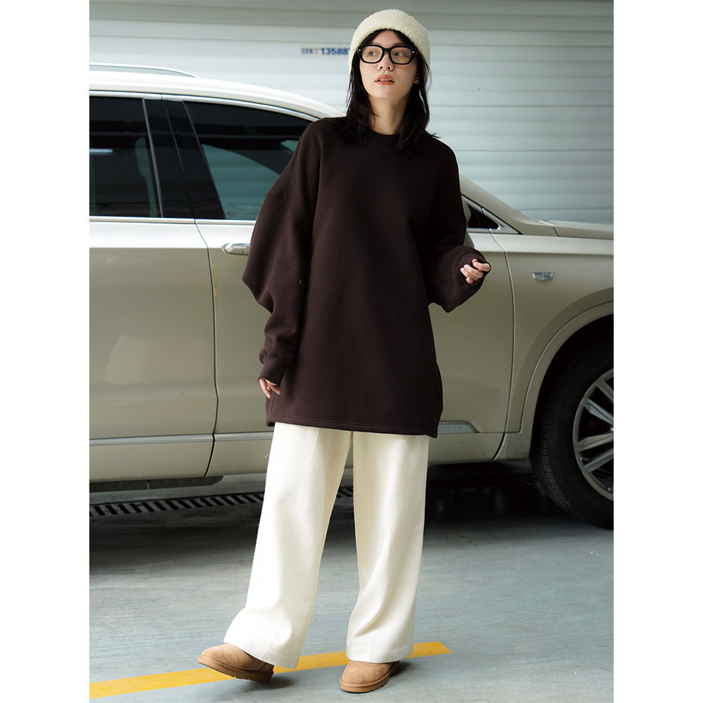 即墨加绒加厚卫衣女纯棉高档秋冬宽松显瘦圆领百搭外穿潮流上衣