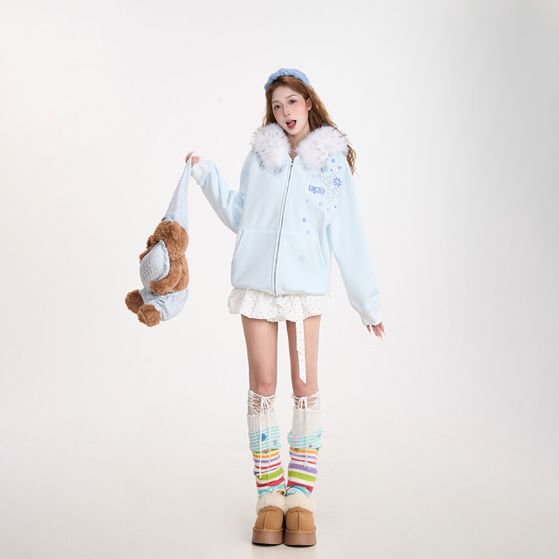 NERESUM雪花刺绣大毛领连帽卫衣女冬季韩系宽松保暖百搭开衫外套,融合时尚与实用,是冬日穿搭的理想选择。采用柔软亲肤面料,内里加绒设计,保暖性出众。胸前精致雪花刺绣点缀,增添冬日浪漫气息,彰显韩系清新风格。超大貉子毛领连帽设计,不仅防风御寒,更提升整体造型感。宽松版型包容性强,适合多种身材,轻松打造慵懒随性look。开衫式设计方便穿脱,可单穿亦可叠搭,搭配牛仔裤、半身裙皆宜,百搭实穿。无论是日常通勤还是休闲出行,都能展现温柔又时髦的冬日魅力。